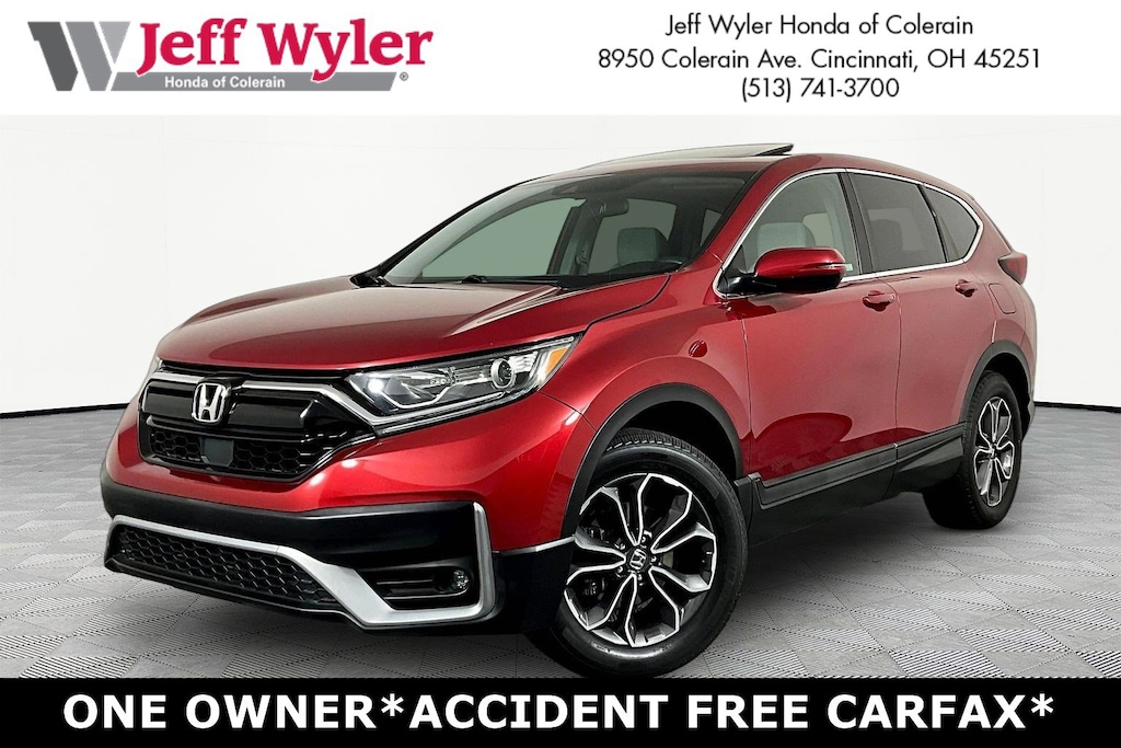 Jeff Wyler Honda of Colerain is delighted to offer this fantastic 2020 Honda CR-V EX in Radiant Re. Well equipped with: 18" Alloy Wheels, 4-Wheel Disc Brakes, 5.64 Axle Ratio, 6 Speakers, ABS brakes, Adaptive Cruise Control: Adaptive Cruise Control (ACC) with Low-Speed Follow, Air Conditioning, Alloy wheels, AM/FM radio: SiriusXM, Apple CarPlay/Android Auto, Auto High-beam Headlights, Automatic temperature control, Blind Spot Information (BSI) System warning, Brake assist, Bumpers: body-color, Cloth Seat Trim, Compass, Delay-off headlights, Driver door bin, Driver vanity mirror, Dual front impact airbags, Dual front side impact airbags, Electronic Stability Control, Exterior Parking Camera Rear, Forward collision: Collision Mitigation Braking System (CMBS) + FCW mitigation, Four wheel independent suspension, Front anti-roll bar, Front Bucket Seats, Front Center Armrest, Front dual zone A/C, Front fog lights, Front reading lights, Heated door mirrors, Heated Front Bucket Seats, Heated front seats, Illuminated entry, Low tire pressure warning, Occupant sensing airbag, Outside temperature display, Overhead airbag, Overhead console, Panic alarm, Passenger door bin, Passenger vanity mirror, Power door mirrors, Power driver seat, Power moonroof, Power steering, Power windows, Radio data system, Radio: 180-Watt AM/FM/HD/SiriusXM Audio System, Rear anti-roll bar, Rear seat center armrest, Rear window defroster, Rear window wiper, Remote keyless entry, Security system, Speed control, Speed-sensing steering, Speed-Sensitive Wipers, Split folding rear seat, Spoiler, Steering wheel mounted audio controls, Tachometer, Telescoping steering wheel, Tilt steering wheel, Traction control, Trip computer, Turn signal indicator mirrors, and Variably intermittent wipers.