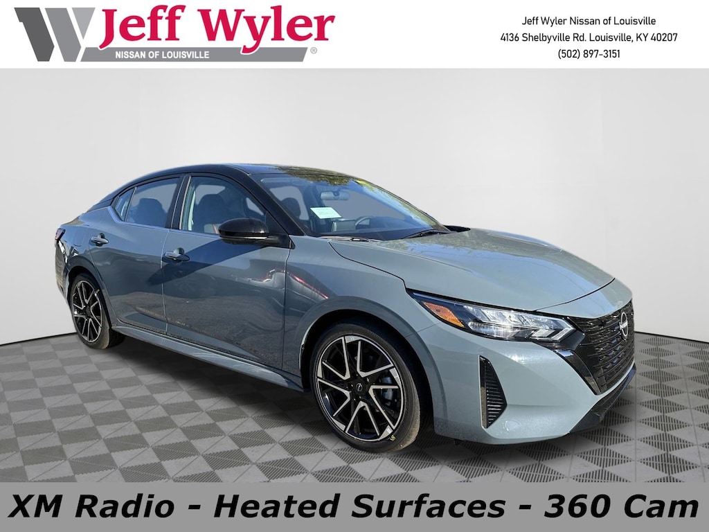 Jeff Wyler Nissan of Louisville is excited to offer this great-looking 2025 Nissan Sentra SR in Atlantic Gray Metallic/Super Black. Well equipped with: SR Premium Package (6-Way Power Driver's Seat, Bose Premium Audio System w/8 Speakers, Intelligent Around View Monitor (I-AVM), Leather Heated Steering Wheel, Leatherette Seat Trim, NissanConnect Services, Power Sliding Glass Moonroof w/Tilt Feature, Sunvisors w/Illuminated Vanity Mirrors, and Wi-Fi Hotspot), CVT with Xtronic, Sport Cloth, 18" Alloy Wheels, 2-Tone Premium Paint, 4-Wheel Disc Brakes, 8 Speakers, ABS brakes, Air Conditioning, Alloy wheels, AM/FM radio: SiriusXM, Auto High-beam Headlights, Automatic temperature control, Blind Spot Warning, Brake assist, Bumpers: body-color, Carpeted Floor Mats w/Trunk Mat, Clear Rear Bumper Protector, Delay-off headlights, Door Sill Plates, Driver door bin, Driver vanity mirror, Dual front impact airbags, Dual front side impact airbags, Electronic Stability Control, Four wheel independent suspension, Front anti-roll bar, Front Bucket Seats, Front Center Armrest, Front dual zone A/C, Front reading lights, Fully automatic headlights, Heated door mirrors, Heated Front Bucket Seats, Heated front seats, Illuminated entry, Knee airbag, Leather Shift Knob, Low tire pressure warning, NissanConnect featuring Apple CarPlay and Android Auto, Occupant sensing airbag, Outside temperature display, Overhead airbag, Overhead console, Panic alarm, Passenger door bin, Passenger vanity mirror, Power door mirrors, Power steering, Power windows, Radio data system, Radio: AM/FM w/RDS/MP3/Aux-In, Rear anti-roll bar, Rear Parking Sensors, Rear seat center armrest, Rear side impact airbag, Rear window defroster, Remote keyless entry, Security system, Speed control, Speed-sensing steering, Split folding rear seat, Spoiler, Sport Cloth Seat Trim, Steering wheel mounted audio controls, Tachometer, Telescoping steering wheel, Tilt steering wheel, Traction control, Trip computer, Turn signal indicator mirrors, and Variably intermittent wipers.2025 Nissan Sentra SR Atlantic Gray Metallic/Super Black Wyler Family First Package Includes: NanoCure Appearance Protection: Exterior & Interior Chemical Sealant Applied to Protect Against Environmental Hazards (7 Year Warranty Coverage). Pulse- Rear end Collision Avoidance System Theft Deterrent Strategy gives you 5 Years of Coverage against vehicle Theft, Offering up to a $5,000 benefit. CVT with Xtronic, Sport Cloth. Customer's May Not Qualify for All Rebates. Prices Do Not Include Tax, License. $500 - Nissan MY25 Sentra Bonus Cash. Exp. 11/03/2025