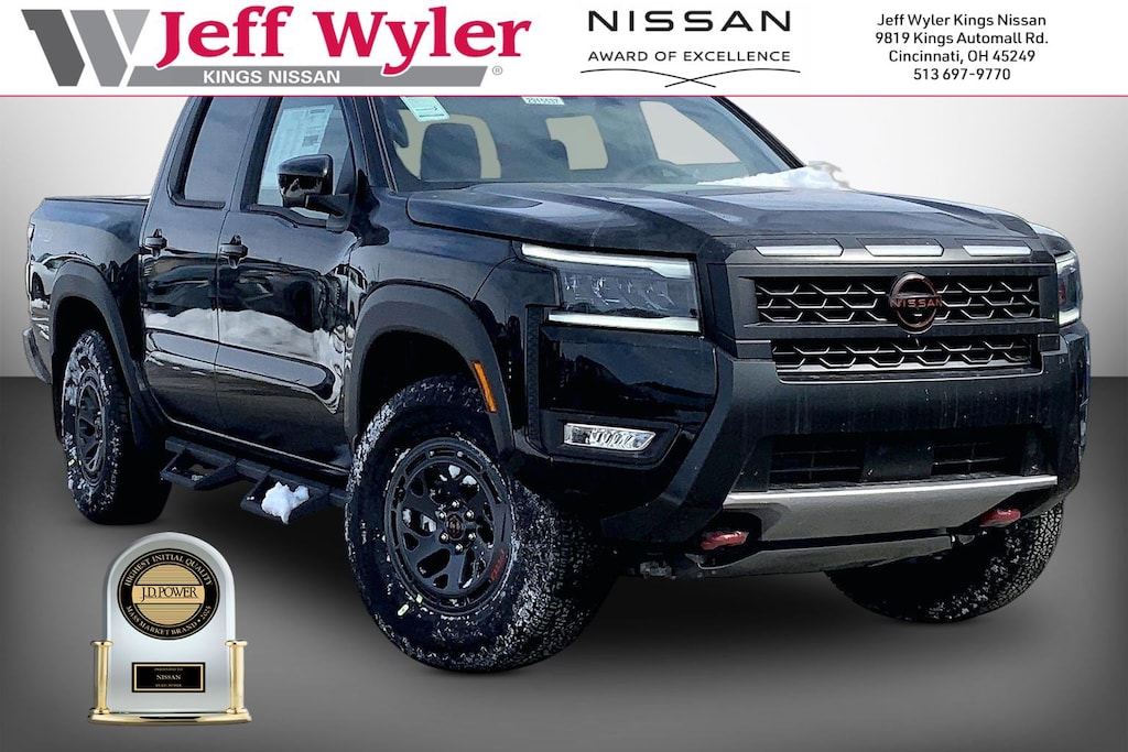 $5,763 off MSRP! Jeff Wyler Kings Nissan is pleased to offer this terrific-looking 2026 Nissan Frontier PRO-4X in Super Black. Well equipped with: Black Accent Package, PRO Premium Package (Leather Seat Trim), PRO-4X Convenience Package, Tow Package (T11), 4WD, 17" Painted Alloy Wheels, 3.692 Axle Ratio, 4-Wheel Disc Brakes, 6 Speakers, ABS brakes, Air Conditioning, Alloy wheels, AM/FM radio: SiriusXM, Anti-whiplash front head restraints, Auto High-beam Headlights, Automatic temperature control, Blind Spot Warning, Brake assist, Bumpers: body-color, Delay-off headlights, Driver door bin, Driver vanity mirror, Dual front impact airbags, Dual front side impact airbags, Electronic Stability Control, Electronic Tailgate Lock, Emergency communication system, Essentials Kit, Front anti-roll bar, Front Bucket Seats, Front Center Armrest, Front dual zone A/C, Front fog lights, Front reading lights, Front wheel independent suspension, Fully automatic headlights, Grille Accent Lighting, Heated Front Bucket Seats, Heated front seats, Heated steering wheel, Illuminated entry, Knee airbag, Leather steering wheel, Low tire pressure warning, Mud Flaps, Occupant sensing airbag, Off-Road Style Step Rails, Overhead airbag, Overhead console, Panic alarm, Passenger door bin, Passenger vanity mirror, Power door mirrors, Power driver seat, Power passenger seat, Power steering, Power windows, PRO Embroidered Premium Cloth Seat Trim, PRO-4X Carpeted Floor Mats, Radio data system, Radio: SXM/AM/FM/AUX/USB Audio System, Rear anti-roll bar, Rear seat center armrest, Rear side impact airbag, Rear step bumper, Remote keyless entry, Security system, Speed control, Speed-sensing steering, Split folding rear seat, Steering wheel mounted audio controls, Tachometer, Telescoping steering wheel, Tilt steering wheel, Traction control, Trip computer, Variably intermittent wipers, Voltmeter, and Wireless Apple CarPlay/Wireless Android Auto.Wyler Family First Package Includes: NanoCure Appearance Protection: Exterior & Interior Chemical Sealant Applied to Protect Against Environmental Hazards (7 Year Warranty Coverage). Pulse- Rear end Collision Avoidance System Theft Deterrent Strategy gives you 5 Years of Coverage against vehicle Theft, Offering up to a $5,000 benefit. Used vehicles 10 years of age or newer with less than 100,000 miles are eligible for the Wyler Assurance Program, but eligible vehicles must pass our reconditioning process and multi-point inspection. Provided the vehicle passes inspection, vehicles will be eligible for the 6 month/6,000 mile limited warranty. The 6 month/6,000 mile limited warranty is NOT available on AS-IS vehicles, wholesale vehicles, lease buyback/pass-thru vehicles or un-inspected vehicles. Note that this program can also apply to vehicles where the remaining factory coverage is less than 6 months or 6,000 miles. Please check the Federal Trade Commission (FTC) Buyers guide on the vehicle for full details as to whether or not warranty coverage may apply. Contact Dealer for additional details. The Wyler Assurance 6 month/6,000 Mile limited warranty ends 6 months from the date of the Retail Purchase Agreement (BUYERS ORDER) or when the vehicle's odometer registers 6,000 additional miles to the mileage listed on the BUYERS ORDER, whichever comes first. Your Deductible - The warranty holder on your contract pays the first $100 of each covered repair. Price includes: $1000 - Nissan MWR Frontier (Pro-4X and SV) Bonus Cash - February. Exp. 03/02/2026 $2500 - Nissan Customer Cash. Exp. 03/02/2026