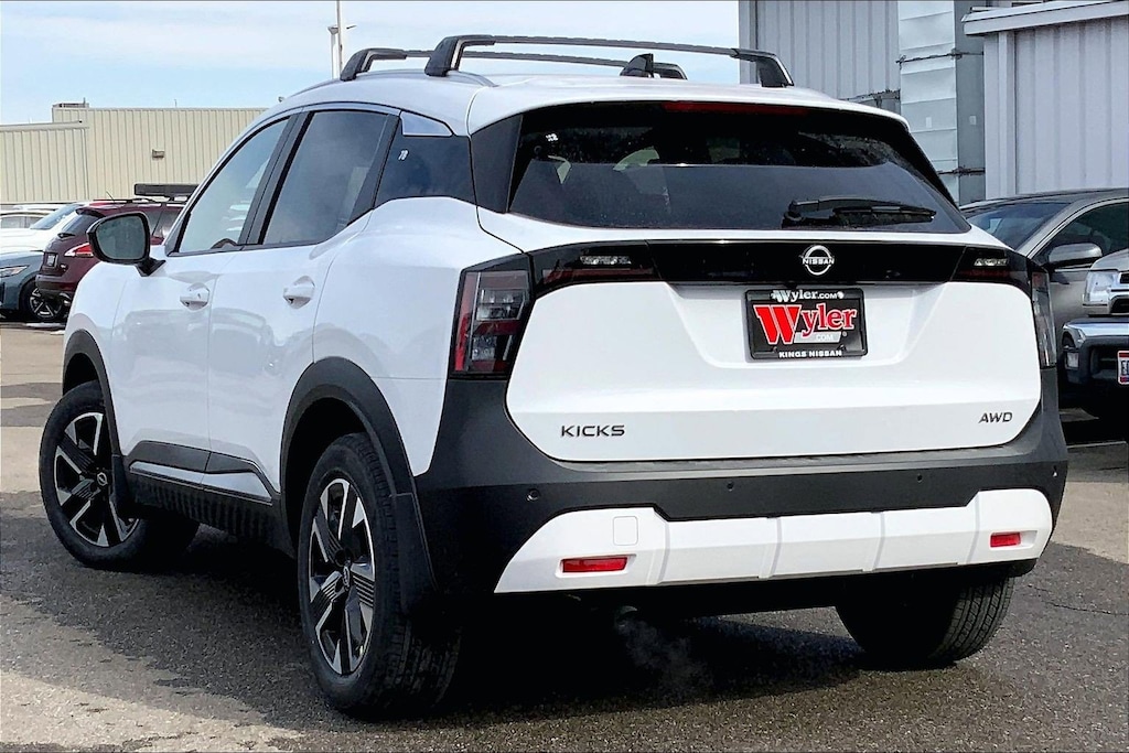 $2,136 off MSRP! Jeff Wyler Kings Nissan is pumped up to offer this superb-looking 2026 Nissan Kicks SV in Fresh Powder. Well equipped with: Cold Weather Package (Heated Front Seats, Heated Mirrors, and Rear Floor Heater Ducts), 17" Alloy Wheels, 4 Speakers, 4-Wheel Disc Brakes, ABS brakes, Air Conditioning, Alloy wheels, AM/FM radio, Auto High-beam Headlights, Automatic temperature control, AWD Cargo Mat, Blind Spot Warning, Brake assist, Bumpers: body-color, Carpeted Floor Mats, Cloth Seat Trim, Crossbars, Driver door bin, Driver vanity mirror, Dual front impact airbags, Dual front side impact airbags, Electronic Stability Control, Emergency communication system, Exterior Parking Camera Rear, Four wheel independent suspension, Front anti-roll bar, Front Bucket Seats, Front Center Armrest, Front reading lights, Fully automatic headlights, Illuminated entry, Knee airbag, Low tire pressure warning, NissanConnect featuring Apple CarPlay and Android Auto, Occupant sensing airbag, Outside temperature display, Overhead airbag, Panic alarm, Passenger door bin, Passenger vanity mirror, Power door mirrors, Power steering, Power windows, Radio data system, Radio: AM/FM/SiriusXM Audio System, Rear anti-roll bar, Rear reading lights, Rear side impact airbag, Rear window defroster, Rear window wiper, Remote keyless entry, Security system, Speed control, Speed-sensing steering, Splash Guards, Split folding rear seat, Spoiler, Sport steering wheel, Steering wheel mounted audio controls, Tachometer, Telescoping steering wheel, Tilt steering wheel, Traction control, Trip computer, and Variably intermittent wipers. 27/34 City/Highway MPGWyler Family First Package Includes: NanoCure Appearance Protection: Exterior & Interior Chemical Sealant Applied to Protect Against Environmental Hazards (7 Year Warranty Coverage). Pulse- Rear end Collision Avoidance System Theft Deterrent Strategy gives you 5 Years of Coverage against vehicle Theft, Offering up to a $5,000 benefit. Used vehicles 10 years of age or newer with less than 100,000 miles are eligible for the Wyler Assurance Program, but eligible vehicles must pass our reconditioning process and multi-point inspection. Provided the vehicle passes inspection, vehicles will be eligible for the 6 month/6,000 mile limited warranty. The 6 month/6,000 mile limited warranty is NOT available on AS-IS vehicles, wholesale vehicles, lease buyback/pass-thru vehicles or un-inspected vehicles. Note that this program can also apply to vehicles where the remaining factory coverage is less than 6 months or 6,000 miles. Please check the Federal Trade Commission (FTC) Buyers guide on the vehicle for full details as to whether or not warranty coverage may apply. Contact Dealer for additional details. The Wyler Assurance 6 month/6,000 Mile limited warranty ends 6 months from the date of the Retail Purchase Agreement (BUYERS ORDER) or when the vehicle's odometer registers 6,000 additional miles to the mileage listed on the BUYERS ORDER, whichever comes first. Your Deductible - The warranty holder on your contract pays the first $100 of each covered repair. Price includes: $1000 - Nissan Customer Cash. Exp. 03/02/2026