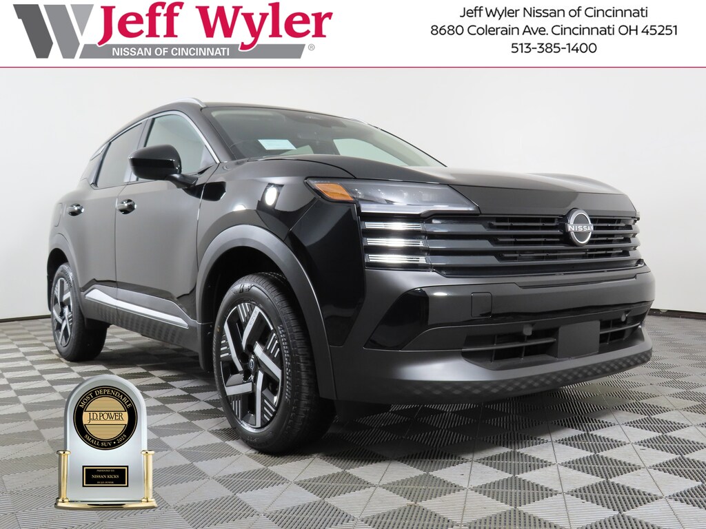 $3,347 off MSRP! Super Black 2026 Nissan Kicks SV FWD CVT with Xtronic Jeff Wyler Nissan of Cincinnati is honored to offer this fantastic 2026 Nissan Kicks SV in Super Black. Well equipped with: Cold Weather Package (Heated Front Seats, Heated Mirrors, and Rear Floor Heater Ducts), SV Premium Package (Illuminated Driver & Passenger Sun Visors, Panoramic Moonroof, and Sunglass Holder), 4 Speakers, 4-Wheel Disc Brakes, ABS brakes, Air Conditioning, AM/FM radio, Auto High-beam Headlights, Automatic temperature control, Blind Spot Warning, Brake assist, Bumpers: body-color, Carpeted Floor Mats & Underfloor Protector, Cloth Seat Trim, Driver door bin, Driver vanity mirror, Dual front impact airbags, Dual front side impact airbags, Electronic Stability Control, Emergency communication system, Exterior Parking Camera Rear, Front anti-roll bar, Front Bucket Seats, Front Center Armrest, Front reading lights, Front wheel independent suspension, Fully automatic headlights, Illuminated entry, Knee airbag, Low tire pressure warning, NissanConnect featuring Apple CarPlay and Android Auto, Occupant sensing airbag, Outside temperature display, Overhead airbag, Panic alarm, Passenger door bin, Passenger vanity mirror, Power door mirrors, Power steering, Power windows, Radio data system, Radio: AM/FM/SiriusXM Audio System, Rear anti-roll bar, Rear reading lights, Rear side impact airbag, Rear window defroster, Rear window wiper, Remote keyless entry, Security system, Speed control, Speed-sensing steering, Splash Guards, Split folding rear seat, Spoiler, Sport steering wheel, Steering wheel mounted audio controls, Tachometer, Telescoping steering wheel, Tilt steering wheel, Traction control, Trip computer, Variably intermittent wipers, and Wheels: 17" Steel Flex w/Full Covers. 2.0L DOHCRecent Arrival! 28/35 City/Highway MPGWyler Family First Package Includes: NanoCure Appearance Protection: Exterior & Interior Chemical Sealant Applied to Protect Against Environmental Hazards (7 Year Warranty Coverage). Pulse- Rear end Collision Avoidance System Theft Deterrent Strategy gives you 5 Years of Coverage against vehicle Theft, Offering up to a $5,000 benefit. Price includes: $1000 - Nissan Customer Cash. Exp. 02/02/2026 $500 - Nissan MWR MY26 Kicks Bonus Cash - January . Exp. 02/02/2026