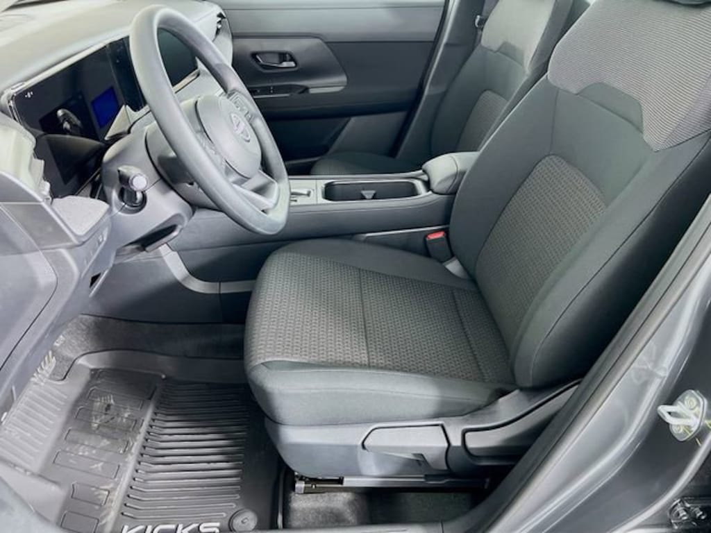 Boasts 35 Highway MPG and 28 City MPG! This Nissan Kicks delivers a Regular Unleaded I-4 2.0 L/122 engine powering this Variable transmission. GUN METALLIC, CHARCOAL, CLOTH SEAT TRIM, [L92] CARPETED FLOOR MATS & CARGO MAT.