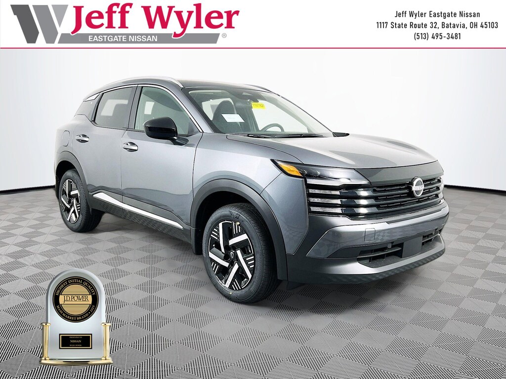 Gun Metallic 2026 Nissan Kicks SV 2.0L DOHC FWD CVT with Xtronic 28/35 City/Highway MPG Jeff Wyler Eastgate Auto Mall is honored to offer this gorgeous-looking 2026 Nissan Kicks SV in Gun Metallic. Well equipped with: Cold Weather Package (Heated Front Seats, Heated Mirrors, and Rear Floor Heater Ducts), SV Premium Package (Illuminated Driver & Passenger Sun Visors, Panoramic Moonroof, and Sunglass Holder), 4 Speakers, 4-Wheel Disc Brakes, ABS brakes, Air Conditioning, AM/FM radio, Auto High-beam Headlights, Automatic temperature control, Blind Spot Warning, Brake assist, Bumpers: body-color, Carpeted Floor Mats & Underfloor Protector, Cloth Seat Trim, Driver door bin, Driver vanity mirror, Dual front impact airbags, Dual front side impact airbags, Electronic Stability Control, Emergency communication system, Exterior Parking Camera Rear, Front anti-roll bar, Front Bucket Seats, Front Center Armrest, Front reading lights, Front wheel independent suspension, Fully automatic headlights, Illuminated entry, Knee airbag, Low tire pressure warning, NissanConnect featuring Apple CarPlay and Android Auto, Occupant sensing airbag, Outside temperature display, Overhead airbag, Panic alarm, Passenger door bin, Passenger vanity mirror, Power door mirrors, Power steering, Power windows, Radio data system, Radio: AM/FM/SiriusXM Audio System, Rear anti-roll bar, Rear reading lights, Rear side impact airbag, Rear window defroster, Rear window wiper, Remote keyless entry, Security system, Speed control, Speed-sensing steering, Splash Guards, Split folding rear seat, Spoiler, Sport steering wheel, Steering wheel mounted audio controls, Tachometer, Telescoping steering wheel, Tilt steering wheel, Traction control, Trip computer, Variably intermittent wipers, and Wheels: 17" Steel Flex w/Full Covers. 28/35 City/Highway MPG Price includes: $1000 - Nissan Customer Cash. Exp. 03/02/2026