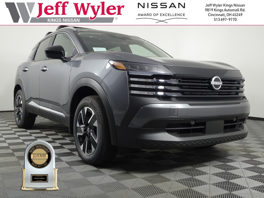 Jeff Wyler Kings Nissan is pleased to offer this charming 2026 Nissan Kicks SV in Gun Metallic. Well equipped with: Cold Weather Package (Heated Front Seats, Heated Mirrors, and Rear Floor Heater Ducts), SV Premium Package (Illuminated Driver & Passenger Sun Visors, Panoramic Moonroof, and Sunglass Holder), 17" Alloy Wheels, 4 Speakers, 4-Wheel Disc Brakes, ABS brakes, Air Conditioning, Alloy wheels, AM/FM radio, Auto High-beam Headlights, Automatic temperature control, Blind Spot Warning, Brake assist, Bumpers: body-color, Carpeted Floor Mats, Cloth Seat Trim, Crossbars, Driver door bin, Driver vanity mirror, Dual front impact airbags, Dual front side impact airbags, Electronic Stability Control, Emergency communication system, Exterior Parking Camera Rear, Four wheel independent suspension, Front anti-roll bar, Front Bucket Seats, Front Center Armrest, Front reading lights, Fully automatic headlights, Illuminated entry, Knee airbag, Low tire pressure warning, NissanConnect featuring Apple CarPlay and Android Auto, Occupant sensing airbag, Outside temperature display, Overhead airbag, Panic alarm, Passenger door bin, Passenger vanity mirror, Power door mirrors, Power steering, Power windows, Radio data system, Radio: AM/FM/SiriusXM Audio System, Rear anti-roll bar, Rear reading lights, Rear side impact airbag, Rear window defroster, Rear window wiper, Remote keyless entry, Security system, Speed control, Speed-sensing steering, Splash Guards, Split folding rear seat, Spoiler, Sport steering wheel, Steering wheel mounted audio controls, Tachometer, Telescoping steering wheel, Tilt steering wheel, Traction control, Trip computer, and Variably intermittent wipers. 27/34 City/Highway MPGWyler Family First Package Includes: NanoCure Appearance Protection: Exterior & Interior Chemical Sealant Applied to Protect Against Environmental Hazards (7 Year Warranty Coverage). Pulse- Rear end Collision Avoidance System Theft Deterrent Strategy gives you 5 Years of Coverage against vehicle Theft, Offering up to a $5,000 benefit. Used vehicles 10 years of age or newer with less than 100,000 miles are eligible for the Wyler Assurance Program, but eligible vehicles must pass our reconditioning process and multi-point inspection. Provided the vehicle passes inspection, vehicles will be eligible for the 6 month/6,000 mile limited warranty. The 6 month/6,000 mile limited warranty is NOT available on AS-IS vehicles, wholesale vehicles, lease buyback/pass-thru vehicles or un-inspected vehicles. Note that this program can also apply to vehicles where the remaining factory coverage is less than 6 months or 6,000 miles. Please check the Federal Trade Commission (FTC) Buyers guide on the vehicle for full details as to whether or not warranty coverage may apply. Contact Dealer for additional details. The Wyler Assurance 6 month/6,000 Mile limited warranty ends 6 months from the date of the Retail Purchase Agreement (BUYERS ORDER) or when the vehicle's odometer registers 6,000 additional miles to the mileage listed on the BUYERS ORDER, whichever comes first. Your Deductible - The warranty holder on your contract pays the first $100 of each covered repair. Price includes: $1000 - Nissan Customer Cash. Exp. 02/02/2026 $500 - Nissan MWR MY26 Kicks Bonus Cash - January . Exp. 02/02/2026