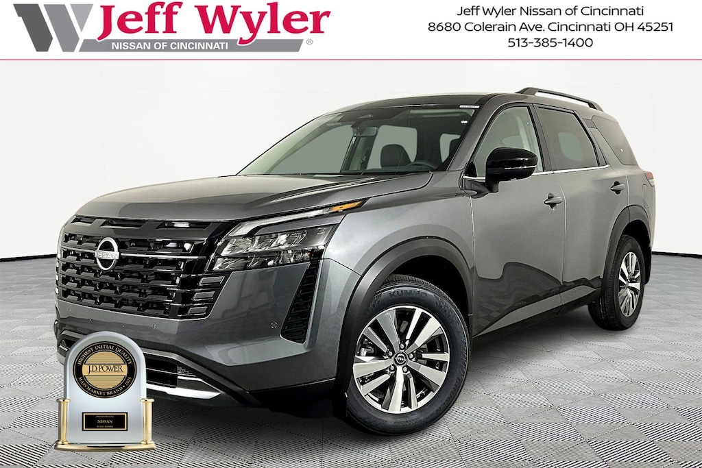 $6,485 off MSRP! Priced below KBB Fair Purchase Price! Gun Metallic 2026 Nissan Pathfinder SL 4WD 9-Speed Automatic Jeff Wyler Nissan of Cincinnati is excited to offer this good-looking 2026 Nissan Pathfinder SL in Gun Metallic. Well equipped with: 4WD, 18" Machined Alloy Wheels, 3rd row seats: bench, 4-Wheel Disc Brakes, 6 Speakers, ABS brakes, Air Conditioning, Alloy wheels, AM/FM radio: SiriusXM w/360L, Auto High-beam Headlights, Auto-dimming Rear-View mirror, Automatic temperature control, Brake assist, Bumpers: body-color, Delay-off headlights, Driver door bin, Driver vanity mirror, Dual front impact airbags, Dual front side impact airbags, Electronic Stability Control, Emergency communication system: NissanConnect Services, Four wheel independent suspension, Front anti-roll bar, Front Bucket Seats, Front Center Armrest, Front dual zone A/C, Front reading lights, Fully automatic headlights, Garage door transmitter: HomeLink, Heated door mirrors, Heated Front Bucket Seats, Heated front seats, Heated steering wheel, Illuminated entry, Knee airbag, Low tire pressure warning, NissanConnect featuring Apple CarPlay and Android Auto, Occupant sensing airbag, Outside temperature display, Overhead airbag, Overhead console, Panic alarm, Passenger door bin, Passenger vanity mirror, Power door mirrors, Power driver seat, Power Liftgate, Power steering, Power windows, Radio data system, Radio: AM/FM Audio System with NissanConnect, Rear air conditioning, Rear anti-roll bar, Rear reading lights, Rear seat center armrest, Rear side impact airbag, Rear window defroster, Rear window wiper, Reclining 3rd row seat, Remote keyless entry, Security system, Speed control, Speed-sensing steering, Split folding rear seat, Spoiler, Steering wheel mounted audio controls, Tachometer, TailorFit Appointed Seating Surfaces, Telescoping steering wheel, Tilt steering wheel, Traction control, Trip computer, Turn signal indicator mirrors, and Variably intermittent wipers. 3.5L V6 DOHC 4WD.21/27 City/Highway MPGWyler Family First Package Includes: NanoCure Appearance Protection: Exterior & Interior Chemical Sealant Applied to Protect Against Environmental Hazards (7 Year Warranty Coverage). Pulse- Rear end Collision Avoidance System Theft Deterrent Strategy gives you 5 Years of Coverage against vehicle Theft, Offering up to a $5,000 benefit. Price includes: $3500 - Nissan Customer Cash. Exp. 05/04/2026