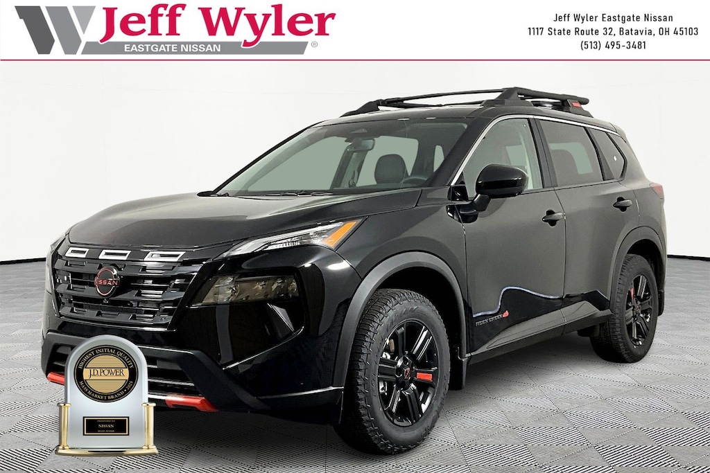Priced below KBB Fair Purchase Price! Super Black 2026 Nissan Rogue Rock Creek 1.5L DOHC AWD CVT with Xtronic 27/32 City/Highway MPG Jeff Wyler Eastgate Auto Mall is proud to offer this great 2026 Nissan Rogue Rock Creek in Super Black. Well equipped with: 4-Wheel Disc Brakes, 6 Speakers, ABS brakes, Air Conditioning, Alloy wheels, AM/FM radio, Apple CarPlay/Android Auto, Auto High-beam Headlights, Automatic temperature control, Black Splash Guards (set of 4), Brake assist, Delay-off headlights, Driver door bin, Driver vanity mirror, Dual front impact airbags, Dual front side impact airbags, Electronic Stability Control, Emergency communication system: NissanConnect Services, Four wheel independent suspension, Frameless Rearview Mirror with Universal Remote, Front anti-roll bar, Front Bucket Seats, Front Center Armrest, Front dual zone A/C, Front reading lights, Fully automatic headlights, Heated door mirrors, Heated Front Bucket Seats, Heated front seats, Illuminated entry, Knee airbag, Leatherette and Ballistic Nylon Seating, Low tire pressure warning, Occupant sensing airbag, Outside temperature display, Overhead airbag, Overhead console, Panic alarm, Passenger door bin, Passenger vanity mirror, Power door mirrors, Power driver seat, Power Liftgate, Power steering, Power windows, Radio data system, Radio: AM/FM NissanConnect, Rear anti-roll bar, Rear Parking Sensors, Rear seat center armrest, Rear side impact airbag, Rear window defroster, Rear window wiper, Remote keyless entry, Roof rack, Speed control, Speed-sensing steering, Speed-Sensitive Wipers, Split folding rear seat, Spoiler, Steering wheel mounted audio controls, Tachometer, Telescoping steering wheel, Tilt steering wheel, Traction control, Trip computer, Variably intermittent wipers, and Wheels: 17" Dark Painted Alloy. 27/32 City/Highway MPG Price includes: $3500 - Nissan Customer Cash. Exp. 05/04/2026