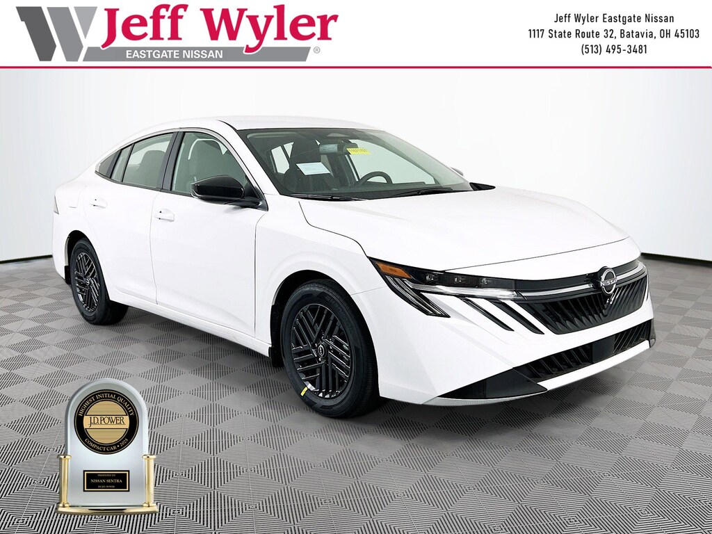 Fresh Powder 2026 Nissan Sentra SV 2.0L I4 DOHC FWD CVT with Xtronic 30/38 City/Highway MPG Jeff Wyler Eastgate Auto Mall is pumped up to offer this fantastic-looking 2026 Nissan Sentra SV in Fresh Powder. Well equipped with: Floor Mat Package, SV Convenience Package (6 Speakers, Ambient Lighting, Auto Diming Inside Mirror, Heated Exterior Mirrors, Heated Front Seats, Heated Steering Wheel, I-Key with Approach Unlock All Plus Walk Away Lock, Soft Knee Pad, Synthetic Leather Steering Wheel, Visor DR/AS w/LED Light, and Wireless Charging For Personal Devices), 16" Machined Alloy Wheels, 4 Speakers, 4-Wheel Disc Brakes, ABS brakes, Air Conditioning, Alloy wheels, AM/FM radio: Sirius, Auto High-beam Headlights, Automatic temperature control, Body Colored Splash Guards (4-Piece), Brake assist, Bumpers: body-color, Delay-off headlights, Driver door bin, Driver vanity mirror, Dual front impact airbags, Dual front side impact airbags, Electronic Stability Control, Four wheel independent suspension, Front anti-roll bar, Front Bucket Seats, Front Center Armrest, Front reading lights, Fully automatic headlights, Illuminated entry, Interior Door Scuff Protection, Knee airbag, Low tire pressure warning, Occupant sensing airbag, Outside temperature display, Overhead airbag, Overhead console, Panic alarm, Passenger door bin, Passenger vanity mirror, Power door mirrors, Power steering, Power windows, Premium Cloth Seat Trim, Radio data system, Radio: AM/FM with RDS/MP3, Rear anti-roll bar, Rear side impact airbag, Rear window defroster, Remote keyless entry, Security system, Speed control, Speed-sensing steering, Split folding rear seat, Steering wheel mounted audio controls, Tachometer, Telescoping steering wheel, Tilt steering wheel, Traction control, Trip computer, Variably intermittent wipers, and Wireless Apple CarPlay/Wireless Android Auto. 30/38 City/Highway MPG Price includes: $500 - Nissan MY26 Sentra Customer Cash (All Markets) - February. Exp. 03/02/2026