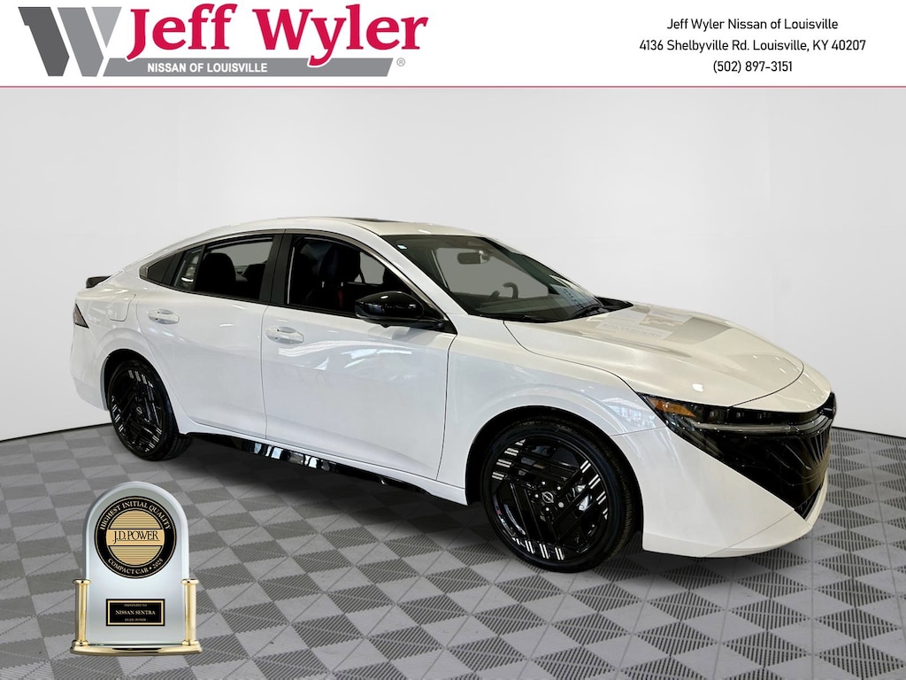 Jeff Wyler Nissan of Louisville is very proud to offer this stunning 2026 Nissan Sentra SR in Aspen White Tricoat. Well equipped with: Floor Mat Package, SR All Weather Package (Dual Zone Auto Climate Control, Heated Front Seats, and Heated Steering Wheel), SR Moonroof Package (Power Tilt Sliding Sunroof with Manual Sunshade), SR Premium Package (6-Way Power Driver's Seat, Auto-Dimming Rear-View Mirror, Bose Premium Audio System, Digital Around View Monitor, Moving Object Detection (MOD), Pro Pilot Assist, Rear Automatic Emergency Braking, Rear Parking Sensor Aid, Sport Leatherette Seat Trim, and Visor DR/AS w/LED Light), CVT with Xtronic, Sport Cloth, 18" Machined Alloy Wheels, 4-Wheel Disc Brakes, 6 Speakers, ABS brakes, Air Conditioning, Alloy wheels, AM/FM radio: Sirius, Auto High-beam Headlights, Automatic temperature control, Brake assist, Bumpers: body-color, Delay-off headlights, Driver door bin, Driver vanity mirror, Dual front impact airbags, Dual front side impact airbags, Electronic Stability Control, Emergency communication system: NissanConnect Services, Four wheel independent suspension, Front anti-roll bar, Front Bucket Seats, Front Center Armrest, Front reading lights, Fully automatic headlights, Garage door transmitter, Heated door mirrors, Illuminated entry, Illuminated Kick Plates, Knee airbag, Leather steering wheel, Low tire pressure warning, Occupant sensing airbag, Outside temperature display, Overhead airbag, Overhead console, Panic alarm, Passenger door bin, Passenger vanity mirror, Power door mirrors, Power steering, Power windows, Premium Paint, Radio data system, Radio: AM/FM with RDS/MP3, Rear anti-roll bar, Rear seat center armrest, Rear side impact airbag, Rear window defroster, Remote keyless entry, Security system, Speed control, Speed-sensing steering, Split folding rear seat, Spoiler, Sport Cloth Seat Trim, Steering wheel mounted audio controls, Tachometer, Telescoping steering wheel, Tilt steering wheel, Traction control, Trip computer, Turn signal indicator mirrors, Variably intermittent wipers, and Wireless Apple CarPlay/Wireless Android Auto.2026 Nissan Sentra SR Aspen White Tricoat Wyler Family First Package Includes: NanoCure Appearance Protection: Exterior & Interior Chemical Sealant Applied to Protect Against Environmental Hazards (7 Year Warranty Coverage). Pulse- Rear end Collision Avoidance System Theft Deterrent Strategy gives you 5 Years of Coverage against vehicle Theft, Offering up to a $5,000 benefit. CVT with Xtronic, Sport Cloth. Customer's May Not Qualify for All Rebates. Prices Do Not Include Tax, License. $500 - Nissan Customer Cash. Exp. 05/04/2026