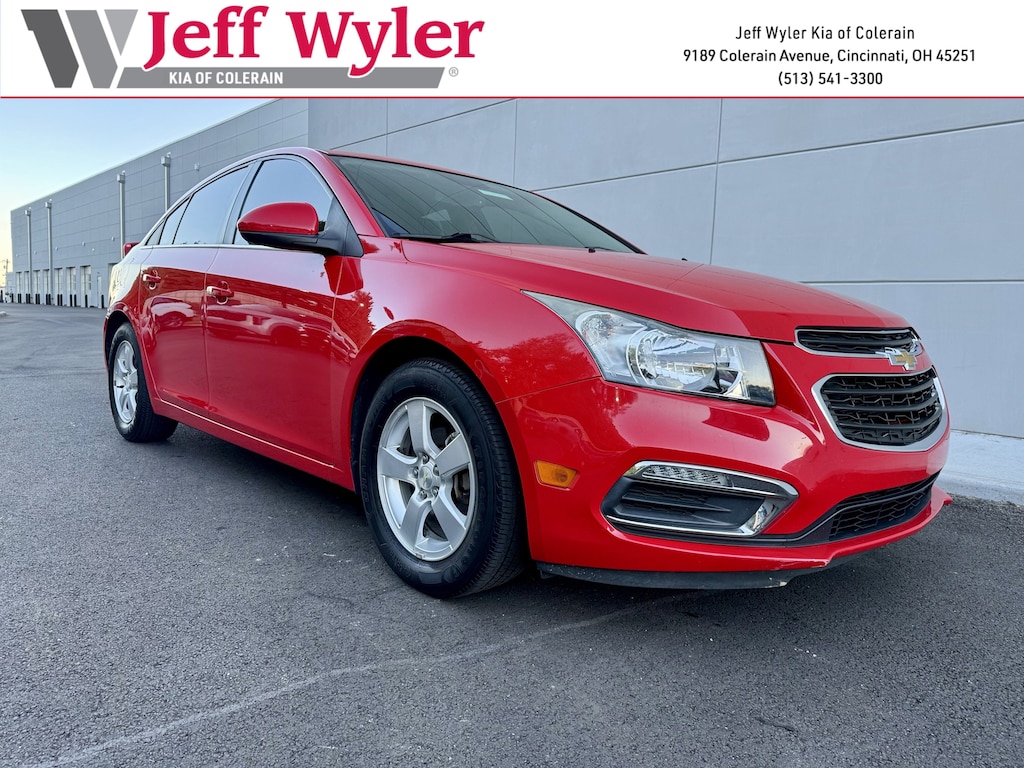Jeff Wyler Kia of Colerain is pumped up to offer this good-looking 2015 Chevrolet Cruze 1LT in Red Hot. 1LT Driver Convenience Package (Auto-Dimming Inside Rear-View Mirror, Driver 6-Way Power Seat Adjuster, Driver/Front Passenger Illuminated Vanity Mirrors, Outside Heated Power-Adjustable Body-Color Mirrors, and Remote Vehicle Starter System), Preferred Equipment Group 1SD, 16" Painted Aluminum Wheels, 6 Speaker Audio System Feature, 6 Speakers, 6-Way Manual Driver Seat Adjuster, ABS brakes, Air Conditioning, Alloy wheels, AM/FM radio: SiriusXM, AM/FM Stereo w/CD Player/MP3 Playback, Brake assist, Bumpers: body-color, Cargo Net, CD player, Compass, Delay-off headlights, Driver door bin, Driver vanity mirror, Dual front impact airbags, Dual front side impact airbags, Electronic Stability Control, Emergency communication system: OnStar Directions & Connections, Front anti-roll bar, Front Bucket Seats, Front Center Armrest, Front License Plate Bracket, Front Passenger 6-Way Manual Seat Adjuster, Front reading lights, Front wheel independent suspension, Fully automatic headlights, Illuminated entry, Knee airbag, Low tire pressure warning, Occupant sensing airbag, Outside temperature display, Overhead airbag, Panic alarm, Passenger door bin, Passenger vanity mirror, Power door mirrors, Power steering, Power windows, Premium Cloth Seat Trim, Radio data system, Rear seat center armrest, Rear side impact airbag, Rear window defroster, Remote keyless entry, Security system, SiriusXM Satellite Radio, Speed control, Speed-sensing steering, Split folding rear seat, Steering wheel mounted audio controls, Tachometer, Telescoping steering wheel, Tilt steering wheel, Traction control, Trip computer, Variably intermittent wipers, and Voltmeter Our PRE-OWNED vehicles are put through a rigorous 167- POINT QUALITY ASSURANCE INSPECTION along with an average amount of over $1,400.00 SPENT to recondition each vehicle so we can be sure to deliver you the highest quality vehicle like you deserve! ***ONLINE PRICE DOES NOT INCLUDE WYLER FAMILY FIRST PACKAGE***
