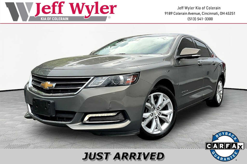 Jeff Wyler Kia of Colerain is delighted to offer this charming 2019 Chevrolet Impala LT in Pepperdust Metallic. Preferred Equipment Group 1LT, 100-Watt 6-Speaker System, 18" Painted Alloy Wheels, 3.23 Final Drive Axle Ratio, 4-Way Manual Front Passenger Seat Adjuster, 4-Wheel Disc Brakes, 6 Speakers, 8-Way Power Driver Seat Adjuster, 8" Diagonal Color Infotainment Display, 800 Cold-Cranking Amps Battery, ABS brakes, Air Conditioning, Alloy wheels, AM/FM radio: SiriusXM, Apple CarPlay/Android Auto, Automatic temperature control, Brake assist, Bumpers: body-color, Compass, Delay-off headlights, Driver door bin, Driver Power Lumbar Seat Adjuster, Driver vanity mirror, Dual front impact airbags, Dual front side impact airbags, Electronic Stability Control, Emergency communication system: OnStar and Chevrolet connected services capable, Exterior Parking Camera Rear, Four wheel independent suspension, Front anti-roll bar, Front Bucket Seats, Front Center Armrest, Front dual zone A/C, Front License Plate Bracket, Front Passenger Power Lumbar Seat Adjuster, Front reading lights, Fully automatic headlights, Heated door mirrors, Illuminated entry, Knee airbag, Low tire pressure warning, Occupant sensing airbag, Overhead airbag, Overhead console, Panic alarm, Passenger door bin, Passenger vanity mirror, Power door mirrors, Power driver seat, Power steering, Power windows, Premium Cloth/Leatherette Seat Trim, Radio data system, Radio: Chevrolet Infotainment System AM/FM Stereo, Rear anti-roll bar, Rear reading lights, Rear seat center armrest, Rear side impact airbag, Rear window defroster, Remote keyless entry, Security system, SiriusXM Radio, Speed control, Speed-sensing steering, Split folding rear seat, Steering wheel mounted audio controls, Stop-Start Engine Control System, Tachometer, Telescoping steering wheel, Tilt steering wheel, Traction control, Trip computer, Turn signal indicator mirrors, USB Port, and Variably intermittent wipers Our PRE-OWNED vehicles are put through a rigorous 167- POINT QUALITY ASSURANCE INSPECTION along with an average amount of over $1,400.00 SPENT to recondition each vehicle so we can be sure to deliver you the highest quality vehicle like you deserve! ***ONLINE PRICE DOES NOT INCLUDE WYLER FAMILY FIRST PACKAGE***