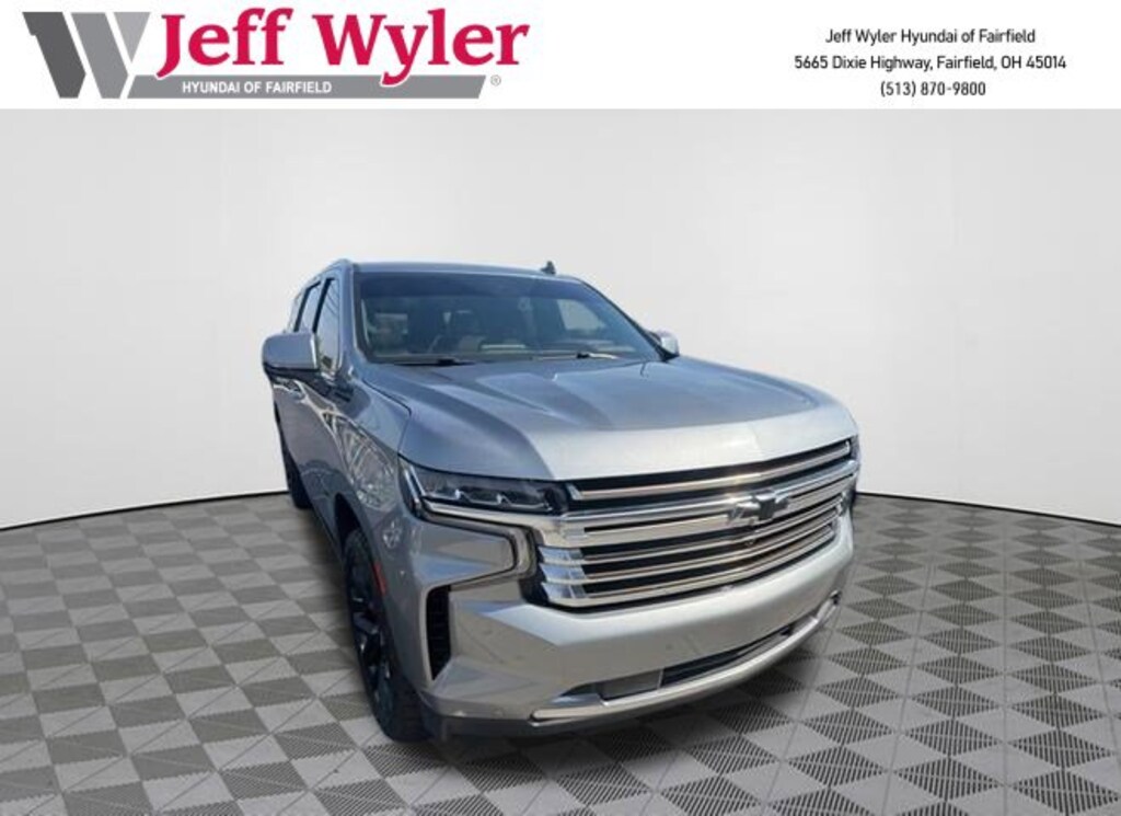 Clean CARFAX. Jeff Wyler Hyundai of Fairfield is excited to offer this handsome 2023 Chevrolet Suburban High Country in Sterling Gray Metallic. Well equipped with: Preferred Equipment Group 3LZ (15" Diagonal Multi-Color Head-Up Display, 1st & 2nd Row Color-Keyed Carpeted Floor Mats, 2-Speed Active Electronic AutoTrac Transfer Case, 3rd Row 60/40 Power-Folding Split-Bench, Bose 10-Speaker Surround w/CenterPoint, Bright Front & Rear Door Sill Plates, Chrome Door Handles w/Body-Color Strip, Color-Keyed Carpeting Floor Covering, Driver & Front Outboard Passenger Airbags, Dual Exhaust System, Enhanced Automatic Emergency Braking, Enhanced Driver Information Center, Floor Console, Hands-Free Rear Power Programmable Liftgate, HD Surround Vision, Heated & Ventilated Driver & Front Passenger Seats, Heated 2nd Row Outboard Seats, Heated Driver & Front Passenger Seats, Heated Steering Wheel, Hill Descent Control, Infotainment Display, Inside Rearview Auto-Dimming Rear Camera Mirror, Lane Change Alert w/Side Blind Zone Alert, LED Daytime Running Lamps, Memory Settings, Outside Heated Power-Adjustable Mirrors, Power Release 2nd Row Bucket Seats, Power Tilt & Telescopic Steering Column, Rear Camera Mirror Washer, Rear Cross Traffic Alert, Rear Pedestrian Alert, Remote Start, Safety Alert Seat, SiriusXM Radio w/360L, Universal Home Remote, Wireless Charging, and Wrapped Steering Wheel), Premium Package 2 (Dual-Pane Power Panoramic Sunroof and Power-Retractable Assist Steps), Android Auto, Apple CarPlay, CALL NOW FOR YOUR VIP APPOINTMENT 513-870-9800, FULLY SERVICED w/RECORDS, GUARANTEED FINANCING!! NO MATTER YOUR SITUATION WE CAN GET AN APPROVAL!!, THE #1 Volume dealer in the region! Come see why for yourself Today!!, WE PAY MORE FOR YOUR TRADE!!, 1.5 kW Heater/Defrost Air System, 10 Speakers, 250 Amps Alternator, 3.23 Rear Axle Ratio, 3rd row seats: split-bench, 4-Wheel Disc Brakes, 850 Cold-Cranking Amps Battery, ABS brakes, Adaptive Cruise Control, Adaptive suspension, Air Conditioning, Alloy wheels, AM/FM radio: SiriusXM with 360L, Apple CarPlay/Android Auto, Auto High-beam Headlights, Auto-dimming door mirrors, Auto-dimming Rear-View mirror, Auto-leveling suspension, Automatic temperature control, Black Name Plates (LPO), Brake assist, Bumpers: body-color, Compass, Delay-off headlights, Diesel B20 Fuel, Driver door bin, Driver vanity mirror, Dual front impact airbags, Dual front side impact airbags, Electronic Stability Control, Emergency communication system: OnStar and Chevrolet connected services capable, Engine Block Heater, Exterior Parking Camera Rear, Four wheel independent suspension, Front & Rear Black Bowtie Emblems (LPO), Front anti-roll bar, Front Bucket Seats, Front Center Armrest, Front dual zone A/C, Front reading lights, Fully automatic headlights, Garage door transmitter, Heads-Up Display, Heated door mirrors, Heated front seats, Heated rear seats, Heated steering wheel, Illuminated entry, Low tire pressure warning, Magnetic Ride Control Suspension, Memory seat, Navigation System, Not Equipped w/4-Way Driver & Fr Pass Pwr Lumbar, Not Equipped w/Wheel Locks (LPO), Occupant sensing airbag, Outside temperature display, Overhead airbag, Overhead console, Panic alarm, Passenger door bin, Passenger vanity mirror, Perforated Leather Seating Surfaces, Power door mirrors, Power driver seat, Power Liftgate, Power passenger seat, Power steering, Power windows, Premium audio system: Chevrolet Infotainment 3 Premium, Radio: Chevrolet Infotainment 3 Premium System, Rain sensing wipers, Rear air conditioning, Rear anti-roll bar, Rear reading lights, Rear window defroster, Rear window wiper, Remote keyless entry, Roof rack: rails only, Security system, Single Outlet Exhaust, Speed control, Speed-sensing steering, Split folding rear seat, Spoiler, Steering wheel memory, Steering wheel mounted audio controls, Tachometer, Telescoping steering wheel, Tilt steering wheel, Traction control, Trip computer, Turn signal indicator mirrors, Upper