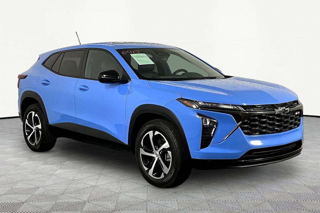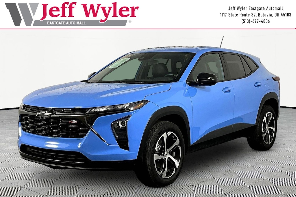Jeff Wyler Eastgate Auto Mall is pumped up to offer this outstanding-looking 2024 Chevrolet Trax 1RS in Fountain Blue. Well equipped with: Preferred Equipment Group 1RS, Sunroof Package (Power Sliding Glass Sunroof w/Manual Shade), 2-Way Adjustable Front Head Restraints, 3.50 Final Drive Axle Ratio, 4 Speakers, 4-Speaker Audio System Feature, 4-Way Manual Front Passenger Seat Adjuster, 4-Wheel Disc Brakes, 6-Way Manual Driver Seat Adjuster, ABS brakes, Air Conditioning, Alloy wheels, AM/FM radio: SiriusXM, Auto High-beam Headlights, Brake assist, Bumpers: body-color, Cloth Seat Trim, Compass, Delay-off headlights, Driver door bin, Driver vanity mirror, Dual front impact airbags, Dual front side impact airbags, Electronic Stability Control, Emergency communication system: OnStar and Chevrolet connected services capable, Exterior Parking Camera Rear, Front anti-roll bar, Front Bucket Seats, Front Center Armrest, Front reading lights, Front wheel independent suspension, Fully automatic headlights, Heated door mirrors, Heated Driver & Front Passenger Seats, Heated front seats, Heated steering wheel, Illuminated entry, Low tire pressure warning, Occupant sensing airbag, Outside temperature display, Overhead airbag, Overhead console, Panic alarm, Passenger door bin, Passenger vanity mirror, Power door mirrors, Power steering, Power windows, Premium audio system: Chevrolet Infotainment 3, Radio data system, Radio: Chevrolet Infotainment 3 System w/AM/FM, Rear window defroster, Rear window wiper, Remote keyless entry, Security system, SiriusXM, Speed control, Split folding rear seat, Spoiler, Sport steering wheel, Steering wheel mounted audio controls, Tachometer, Telescoping steering wheel, Tilt steering wheel, Traction control, Trip computer, Variably intermittent wipers, and Wheels: 18" Black-Painted Machined Aluminum. CARFAX One-Owner. Awards: * Car and Driver 10 BestCar and Driver, January 2017. Ask about available certifications. Used vehicles 10 years of age or newer with less than 100,000 miles are eligible for the Wyler Assurance Program, but eligible vehicles must pass our reconditioning process and multi-point inspection. Provided the vehicle passes inspection, vehicles will be eligible for the 6 month/6,000 mile limited warranty. The 6 month/6,000 mile limited warranty is NOT available on AS-IS vehicles, wholesale vehicles, lease buyback/pass-thru vehicles or un-inspected vehicles. Note that this program can also apply to vehicles where the remaining factory coverage is less than 6 months or 6,000 miles. Please check the Federal Trade Commission (FTC) Buyers guide on the vehicle for full details as to whether or not warranty coverage may apply. Contact Dealer for additional details. The Wyler Assurance 6 month/6,000 Mile limited warranty ends 6 months from the date of the Retail Purchase Agreement (BUYERS ORDER) or when the vehicle's odometer registers 6,000 additional miles to the mileage listed on the BUYERS ORDER, whichever comes first. Your Deductible - The warranty holder on your contract pays the first $100 of each covered repair.