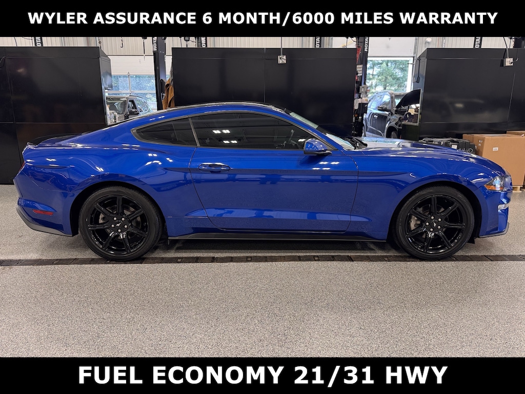 Jeff Wyler Kia of Colerain is very proud to offer this terrific-looking 2018 Ford Mustang EcoBoost in Lightning Blue Metallic. 4-Wheel Disc Brakes, 6 Speakers, ABS brakes, Air Conditioning, Alloy wheels, AM/FM radio, AM/FM Stereo w/Single CD Player, Auto-dimming Rear-View mirror, Brake assist, Bumpers: body-color, CD player, Compass, Delay-off headlights, Driver door bin, Driver vanity mirror, Dual front impact airbags, Dual front side impact airbags, Electronic Stability Control, Emergency communication system: 911 Assist, Exterior Parking Camera Rear, Four wheel independent suspension, Front anti-roll bar, Front Bucket Seats, Front Center Armrest, Front reading lights, Fully automatic headlights, Illuminated entry, Knee airbag, Leather Shift Knob, Low tire pressure warning, Occupant sensing airbag, Outside temperature display, Overhead airbag, Overhead console, Panic alarm, Passenger door bin, Passenger vanity mirror, Power door mirrors, Power steering, Power windows, Radio data system, Rear anti-roll bar, Rear window defroster, Remote keyless entry, Security system, Speed control, Speed-sensing steering, Speed-Sensitive Wipers, Split folding rear seat, Steering wheel mounted audio controls, SYNC Communications & Entertainment System, Tachometer, Telescoping steering wheel, Tilt steering wheel, Traction control, Trip computer, Variably intermittent wipers, Voltmeter, and Wheels: 17" Sparkle Silver-Painted Aluminum Our PRE-OWNED vehicles are put through a rigorous 167- POINT QUALITY ASSURANCE INSPECTION along with an average amount of over $1,400.00 SPENT to recondition each vehicle so we can be sure to deliver you the highest quality vehicle like you deserve! ***ONLINE PRICE DOES NOT INCLUDE WYLER FAMILY FIRST PACKAGE***