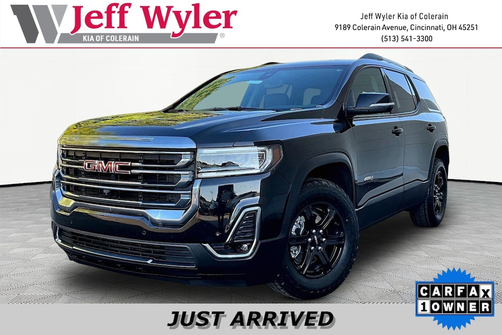 Jeff Wyler Kia of Colerain is delighted to offer this beautiful 2022 GMC Acadia AT4 in Ebony Twilight Metallic. Luxury Package (8-Way Power Passenger Seat Adjuster, Heated & Ventilated Driver & Front Passenger Seats, Heated Rear Outboard Seating Positions, Power Passenger Lumbar Control Seat Adjuster, Power Tilt & Telescopic Steering Column, and Power-Adjustable Body-Color Outside Heated Mirrors), Memory Package, Preferred Equipment Group 4SB, Preferred Package (Heated Steering Wheel), Technology Package (8" Multi-Color Enhanced Dr Instrument Info Display, HD Surround Vision, and Heads-Up Display), 3.49 Final Drive Axle Ratio, 3rd row seats: split-bench, 4-Way Manual Passenger Seat Adjuster, 4-Wheel Disc Brakes, 6-Passenger (2-2-2 Seating Configuration), 8 Speakers, 8-Way Power Driver Seat Adjuster, ABS brakes, Air Conditioning, Alloy wheels, AM/FM radio: SiriusXM with 360L, Apple CarPlay/Android Auto, Auto High-beam Headlights, Auto-dimming Rear-View mirror, Automatic temperature control, Black Center Caps w/Red GMC Logo (LPO), Bose Premium 8-Speaker Audio System Feature, Brake assist, Bumpers: body-color, Compass, Delay-off headlights, Driver door bin, Driver vanity mirror, Dual front impact airbags, Dual front side impact airbags, Dual SkyScape 2-Panel Power Sunroof, Electronic Stability Control, Emergency communication system: OnStar and GMC Connected Services capable, Four wheel independent suspension, Front anti-roll bar, Front Bucket Seats, Front Center Armrest, Front dual zone A/C, Front fog lights, Front reading lights, Fully automatic headlights, Garage door transmitter, Heated door mirrors, Heated Driver & Front Passenger Seats, Heated front seats, Illuminated entry, Knee airbag, Low tire pressure warning, Navigation System, Not Equipped w/Front & Rear Park Assist, Not Equipped w/Heated Rear Outboard Seats, Not Equipped w/Heated Steering Wheel, Not Equipped w/Heated/Ventilated Front Seats, Occupant sensing airbag, Outside temperature display, Overhead airbag, Overhead console, Panic alarm, Passenger door bin, Passenger vanity mirror, Power door mirrors, Power Driver Lumbar Control Seat Adjuster, Power driver seat, Power Liftgate, Power steering, Power windows, Premium audio system: GMC Infotainment System, Premium Cloth Seat Trim, Radio data system, Radio: AM/FM 8" Diagonal Multi-Touch Navigation, Rear air conditioning, Rear anti-roll bar, Rear reading lights, Rear window defroster, Rear window wiper, Remote keyless entry, Roof rack: rails only, Security system, SiriusXM w/360L, Speed control, Speed-sensing steering, Spoiler, Steering wheel mounted audio controls, Tachometer, Telescoping steering wheel, Tilt steering wheel, Traction control, Trip computer, Turn signal indicator mirrors, Variably intermittent wipers, Voltmeter, Wheels: 17" Gloss Black Aluminum, and Wireless Apple CarPlay/Wireless Android Auto Our PRE-OWNED vehicles are put through a rigorous 167- POINT QUALITY ASSURANCE INSPECTION along with an average amount of over $1,400.00 SPENT to recondition each vehicle so we can be sure to deliver you the highest quality vehicle like you deserve! ***ONLINE PRICE DOES NOT INCLUDE WYLER FAMILY FIRST PACKAGE***