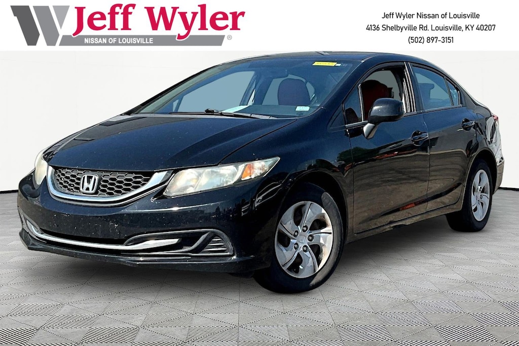 Jeff Wyler Nissan of Louisville is honored to offer this good-looking 2013 Honda Civic LX in Kona Coffee Metallic. ** BLUETOOTH **, ** BACKUP CAMERA **, ** GREAT FUEL ECONOMY **, ** EXCELLENT SERVICE HISTORY **, ** LOCALLY OWNED **, and ** HOME DELIVERY OPTIONS! ** Black w/Cloth Seat Trim, 15" Wheels w/Full Covers, 160-Watt AM/FM/CD Audio System, 4 Speakers, ABS brakes, Air Conditioning, AM/FM radio, Brake assist, Bumpers: body-color, CD player, Cloth Seat Trim, Delay-off headlights, Driver door bin, Driver vanity mirror, Dual front impact airbags, Dual front side impact airbags, Electronic Stability Control, Exterior Parking Camera Rear, Four wheel independent suspension, Front anti-roll bar, Front Bucket Seats, Front Center Armrest, Front reading lights, Illuminated entry, Low tire pressure warning, Occupant sensing airbag, Outside temperature display, Overhead airbag, Panic alarm, Passenger door bin, Passenger vanity mirror, Power door mirrors, Power steering, Power windows, Radio data system, Rear anti-roll bar, Rear window defroster, Reclining Front Bucket Seats, Remote keyless entry, Security system, Speed control, Speed-sensing steering, Steering wheel mounted audio controls, Tachometer, Telescoping steering wheel, Tilt steering wheel, Traction control, and Trip computer Our PRE-OWNED vehicles are put through a rigorous 167- POINT QUALITY ASSURANCE INSPECTION along with an average amount of over $1,400.00 SPENT to recondition each vehicle so we can be sure to deliver you the highest quality vehicle like you deserve! ***ONLINE PRICE DOES NOT INCLUDE WYLER FAMILY FIRST PACKAGE*** Stop by 4136 Shelbyville Road to see for yourself, or give us a call @ 502-897-3151 to schedule your test drive! ** BLUETOOTH **, ** BACKUP CAMERA **, ** GREAT FUEL ECONOMY **, ** EXCELLENT SERVICE HISTORY **, ** LOCALLY OWNED **, Black w/Cloth Seat Trim, 15" Wheels w/Full Covers, 160-Watt AM/FM/CD Audio System, 4 Speakers, ABS brakes, Air Conditioning, AM/FM radio, Brake assist, Bumpers: body-color, CD player, Cloth Seat Trim, Delay-off headlights, Driver door bin, Driver vanity mirror, Dual front impact airbags, Dual front side impact airbags, Electronic Stability Control, Exterior Parking Camera Rear, Four wheel independent suspension, Front anti-roll bar, Front Bucket Seats, Front Center Armrest, Front reading lights, Illuminated entry, Low tire pressure warning, Occupant sensing airbag, Outside temperature display, Overhead airbag, Panic alarm, Passenger door bin, Passenger vanity mirror, Power door mirrors, Power steering, Power windows, Radio data system, Rear anti-roll bar, Rear window defroster, Reclining Front Bucket Seats, Remote keyless entry, Security system, Speed control, Speed-sensing steering, Steering wheel mounted audio controls, Tachometer, Telescoping steering wheel, Tilt steering wheel, Traction control, Trip computer.