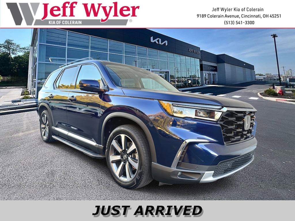 Jeff Wyler Kia of Colerain is proud to offer this outstanding 2023 Honda Pilot Elite in Obsidian Blue Pearl. 12 Speakers, 3rd row seats: split-bench, 4-Wheel Disc Brakes, ABS brakes, Adaptive Cruise Control: Adaptive Cruise Control (ACC) with Low-Speed Follow, Air Conditioning, Alloy wheels, AM/FM radio: SiriusXM, Apple CarPlay/Android Auto, Auto High-beam Headlights, Auto-dimming door mirrors, Auto-dimming Rear-View mirror, Automatic temperature control, Axle Ratio: 4.167, Blind Spot Information (BSI) System warning, Bose Premium Sound System, Brake assist, Bumpers: body-color, Compass, Delay-off headlights, Driver door bin, Driver vanity mirror, Dual front impact airbags, Dual front side impact airbags, Electronic Stability Control, Emergency communication system: HondaLink, Four wheel independent suspension, Front anti-roll bar, Front Bucket Seats, Front Center Armrest, Front dual zone A/C, Front fog lights, Front reading lights, Fully automatic headlights, Garage door transmitter: HomeLink, Heads-Up Display, Heated & Ventilated Front Bucket Seats, Heated door mirrors, Heated front seats, Heated rear seats, Heated steering wheel, Illuminated entry, Knee airbag, Lane departure: Lane Keeping Assist System (LKAS) active, Low tire pressure warning, Memory seat, Navigation system: Honda Satellite-Linked Navigation System, Occupant sensing airbag, Outside temperature display, Overhead airbag, Overhead console, Panic alarm, Passenger door bin, Passenger vanity mirror, Perforated Leather Seat Trim, Power door mirrors, Power driver seat, Power Liftgate, Power moonroof, Power passenger seat, Power steering, Power windows, Radio data system, Rain sensing wipers, Rear air conditioning, Rear anti-roll bar, Rear reading lights, Rear seat center armrest, Rear window defroster, Rear window wiper, Reclining 3rd row seat, Remote keyless entry, Security system, Speed control, Speed-sensing steering, Speed-Sensitive Wipers, Split folding rear seat, Spoiler, Steering wheel mounted audio controls, Tachometer, Telescoping steering wheel, Tilt steering wheel, Traction control, Trip computer, Turn signal indicator mirrors, Variably intermittent wipers, Ventilated front seats, and Wheels: 20" Machine Face Shark Gray w/Blk Lug Nuts Our PRE-OWNED vehicles are put through a rigorous 167- POINT QUALITY ASSURANCE INSPECTION along with an average amount of over $1,400.00 SPENT to recondition each vehicle so we can be sure to deliver you the highest quality vehicle like you deserve! ***ONLINE PRICE DOES NOT INCLUDE WYLER FAMILY FIRST PACKAGE***