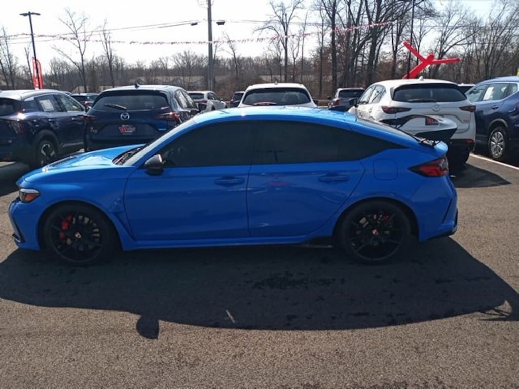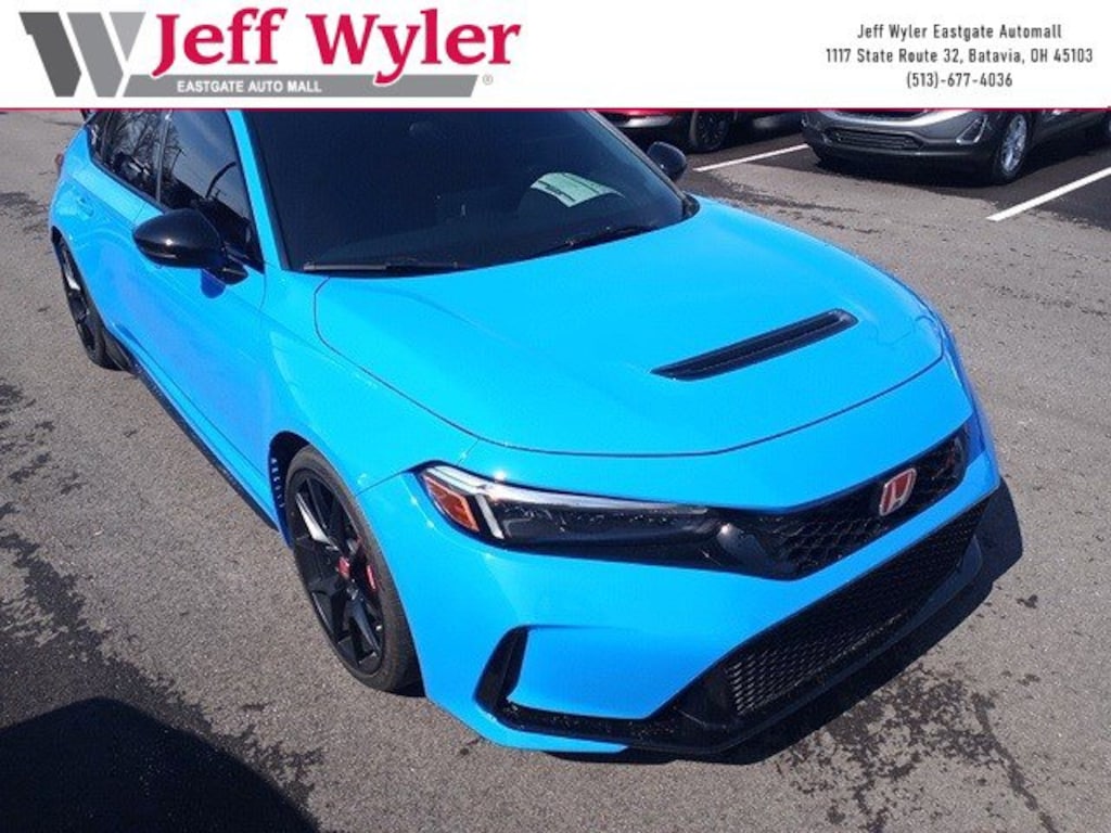 Jeff Wyler Eastgate Auto Mall is very proud to offer this great 2024 Honda Civic Type R in Blue. Well equipped with: 12 Speakers, 4-Wheel Disc Brakes, ABS brakes, Adaptive suspension, Air Conditioning, Alloy wheels, AM/FM radio: SiriusXM, Apple CarPlay/Android Auto, Auto High-beam Headlights, Automatic temperature control, Blind Spot Information (BSI) System warning, Brake assist, Bumpers: body-color, Compass, Delay-off headlights, Driver door bin, Driver vanity mirror, Dual front impact airbags, Dual front side impact airbags, Electronic Stability Control, Exclusively-Designed High-Bolstered Sport Seats, Exterior Parking Camera Rear, Four wheel independent suspension, Front anti-roll bar, Front Bucket Seats, Front Center Armrest, Front dual zone A/C, Front reading lights, Fully automatic headlights, Illuminated entry, Knee airbag, Leather steering wheel, Low tire pressure warning, Navigation System, Occupant sensing airbag, Outside temperature display, Overhead airbag, Overhead console, Panic alarm, Passenger door bin, Passenger vanity mirror, Power door mirrors, Power steering, Power windows, Radio data system, Radio: Bose Premium Sound System w/SiriusXM, Rear anti-roll bar, Rear window defroster, Rear window wiper, Remote keyless entry, Security system, Speed control, Speed-sensing steering, Split folding rear seat, Spoiler, Steering wheel mounted audio controls, Suede-Effect Fabric Seating Surfaces, Tachometer, Telescoping steering wheel, Tilt steering wheel, Traction control, Trip computer, Turn signal indicator mirrors, Variably intermittent wipers, Voltmeter, and Wheels: 19" x 9.5J Matte Black. Ask about available certifications. Used vehicles 10 years of age or newer with less than 100,000 miles are eligible for the Wyler Assurance Program, but eligible vehicles must pass our reconditioning process and multi-point inspection. Provided the vehicle passes inspection, vehicles will be eligible for the 6 month/6,000 mile limited warranty. The 6 month/6,000 mile limited warranty is NOT available on AS-IS vehicles, wholesale vehicles, lease buyback/pass-thru vehicles or un-inspected vehicles. Note that this program can also apply to vehicles where the remaining factory coverage is less than 6 months or 6,000 miles. Please check the Federal Trade Commission (FTC) Buyers guide on the vehicle for full details as to whether or not warranty coverage may apply. Contact Dealer for additional details. The Wyler Assurance 6 month/6,000 Mile limited warranty ends 6 months from the date of the Retail Purchase Agreement (BUYERS ORDER) or when the vehicle's odometer registers 6,000 additional miles to the mileage listed on the BUYERS ORDER, whichever comes first. Your Deductible - The warranty holder on your contract pays the first $100 of each covered repair.