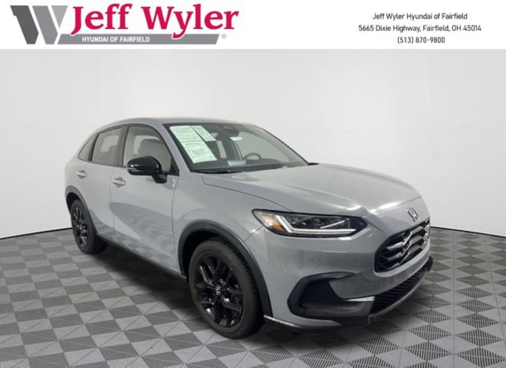 CARFAX One-Owner. Jeff Wyler Hyundai of Fairfield is very proud to offer this handsome-looking 2025 Honda HR-V Sport in . Well equipped with: Android Auto, Apple CarPlay, CALL NOW FOR YOUR VIP APPOINTMENT 513-870-9800, FULLY SERVICED w/RECORDS, GUARANTEED FINANCING!! NO MATTER YOUR SITUATION WE CAN GET AN APPROVAL!!, THE #1 Volume dealer in the region! Come see why for yourself Today!!, WE PAY MORE FOR YOUR TRADE!!, 4-Wheel Disc Brakes, 5.436 Axle Ratio, 6 Speakers, ABS brakes, Adaptive Cruise Control: Adaptive Cruise Control (ACC) with Low-Speed Follow, Air Conditioning, Alloy wheels, AM/FM radio, Apple CarPlay/Android Auto, Auto High-beam Headlights, Automatic temperature control, Blind Spot Information (BSI) System warning, Brake assist, Bumpers: body-color, Cloth Seat Trim, Delay-off headlights, Driver door bin, Driver vanity mirror, Dual front impact airbags, Dual front side impact airbags, Electronic Stability Control, Exterior Parking Camera Rear, Four wheel independent suspension, Front anti-roll bar, Front Bucket Seats, Front Center Armrest, Front reading lights, Fully automatic headlights, Heated door mirrors, Heated Front Bucket Seats, Heated front seats, Illuminated entry, Knee airbag, Leather Shift Knob, Leather steering wheel, Low tire pressure warning, Occupant sensing airbag, Outside temperature display, Overhead airbag, Panic alarm, Passenger door bin, Passenger vanity mirror, Power door mirrors, Power steering, Power windows, Radio data system, Radio: 180-Watt Audio System w/6 Speakers, Rear anti-roll bar, Rear reading lights, Rear side impact airbag, Rear window defroster, Rear window wiper, Remote keyless entry, Security system, Speed control, Speed-sensing steering, Split folding rear seat, Spoiler, Steering wheel mounted audio controls, Tachometer, Telescoping steering wheel, Tilt steering wheel, Traction control, Trip computer, Turn signal indicator mirrors, Variably intermittent wipers, and Wheels: 18" Gloss Black Alloy. TO CHECK ON THE AVAILABILITY OF THIS VEHICLE REACH OUT TO ONE OF OUR TEAM MEMBERS!! ALSO SHOP ONLINE AT https://www.jeffwylerhyundaioffairfield.com/ Proudly Serving: Cincinnati, Dayton, Columbus, Louisville, Lexington, Indianapolis, Hamilton, Florence, Alexandria, Beavercreek, Springdale, West Chester, Monroe, Fairfield, Kenwood, Newport and all of greater Cincinnati Ohio, Indiana, and Northern Kentucky.