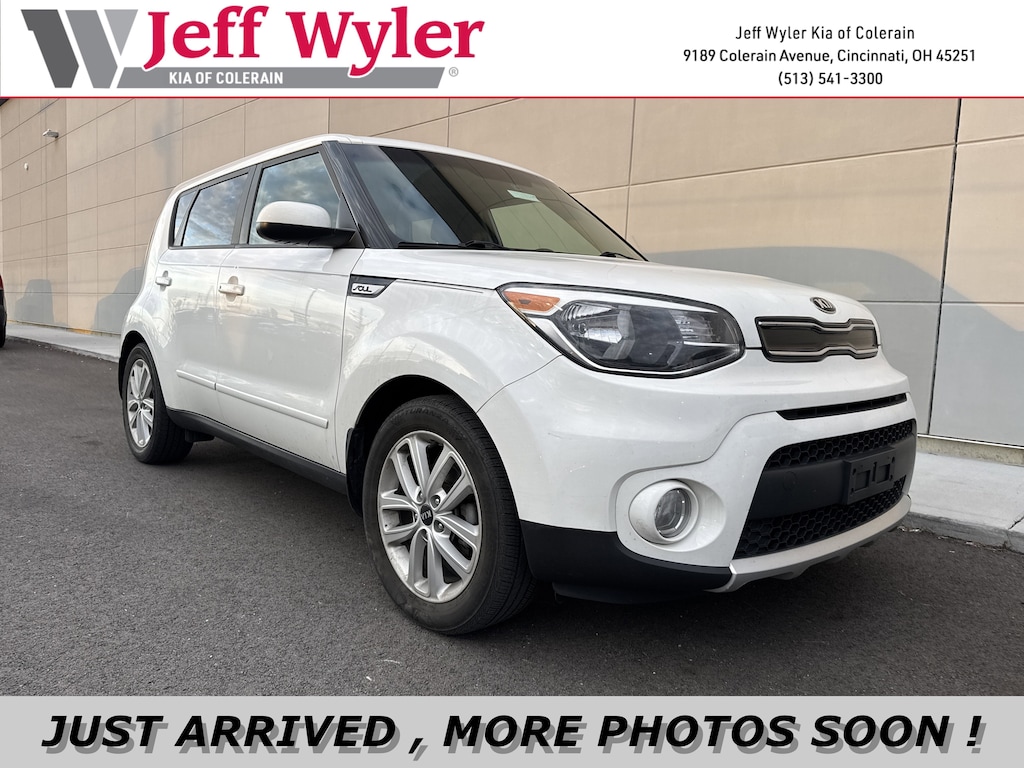 Jeff Wyler Kia of Colerain is excited to offer this good-looking 2018 Kia Soul Plus in Clear White. Audio Package (2 USB Center Console Chargers, Alarm w/Engine Immobilizer, Leather-Wrapped Steering Wheel & Shift Knob, Leatherette Instrument Hood/Door Center/Armrests, Piano Black Interior Accents, Push Button Start w/Smart Key, Radio: harman/kardon AM/FM/MP3/SiriusXM Audio, and Satin Chrome Interior Door Handles), 17" Alloy Wheels, 4-Wheel Disc Brakes, 6 Speakers, 6-Way Adjustable Driver's Seat, ABS brakes, Air Conditioning, Alloy wheels, AM/FM radio: SiriusXM, Apple CarPlay & Android Auto, Automatic temperature control, Brake assist, Bumpers: body-color, Carpeted Floor Mat, Cloth Seat Trim, Driver door bin, Driver vanity mirror, Dual front impact airbags, Dual front side impact airbags, Electronic Stability Control, Emergency communication system: UVO eServices, Exterior Parking Camera Rear, Front anti-roll bar, Front Bucket Seats, Front Center Armrest, Front fog lights, Front reading lights, Front wheel independent suspension, Fully automatic headlights, Heated door mirrors, Illuminated entry, Low tire pressure warning, Occupant sensing airbag, Outside temperature display, Overhead airbag, Overhead console, Panic alarm, Passenger door bin, Passenger vanity mirror, Power door mirrors, Power steering, Power windows, Radio: AM/FM/MP3 Audio System, Rear Bumper Applique (Clear), Rear seat center armrest, Rear window defroster, Rear window wiper, Remote keyless entry, Speed control, Speed-sensing steering, Split folding rear seat, Steering wheel mounted audio controls, Tachometer, Telescoping steering wheel, Tilt steering wheel, Traction control, Trip computer, Variably intermittent wipers, and Wheel Locks Our PRE-OWNED vehicles are put through a rigorous 167- POINT QUALITY ASSURANCE INSPECTION along with an average amount of over $1,400.00 SPENT to recondition each vehicle so we can be sure to deliver you the highest quality vehicle like you deserve! ***ONLINE PRICE DOES NOT INCLUDE WYLER FAMILY FIRST PACKAGE***