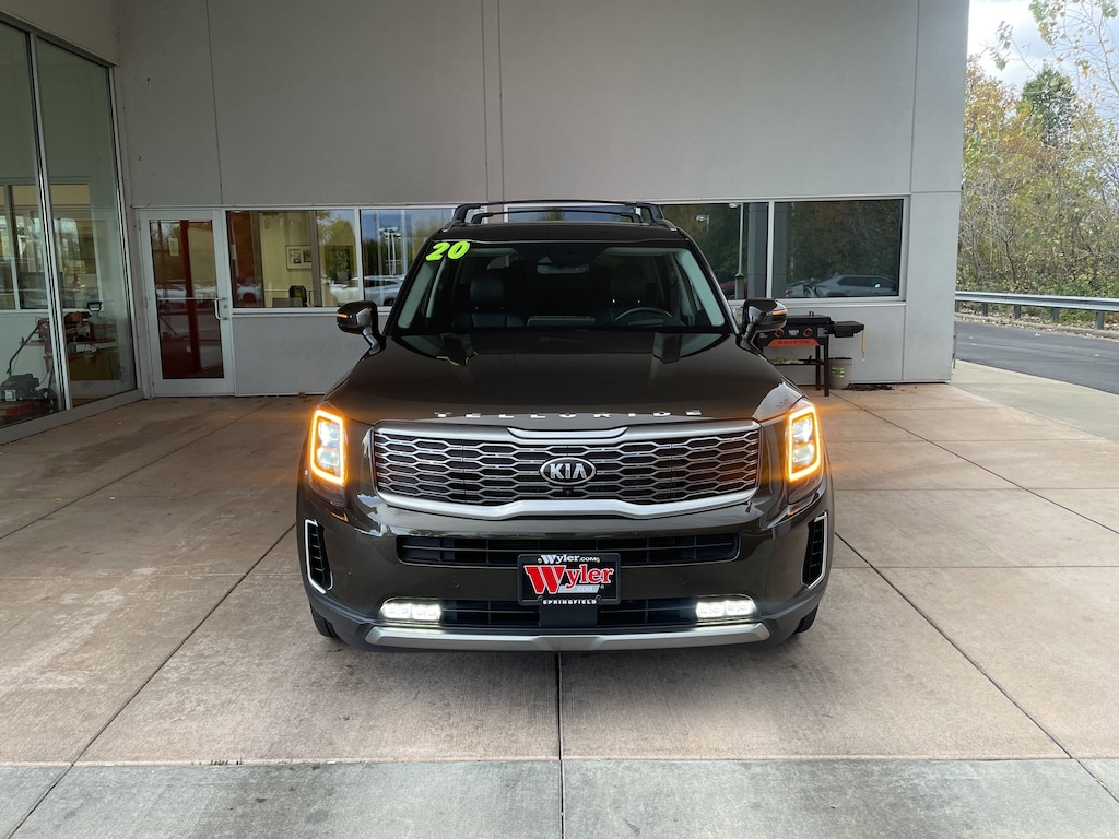 Jeff Wyler Springfield Auto Mall is pumped up to offer this great 2020 Kia Telluride SX in Dark Moss. Well equipped with: SX Prestige Package (110V Inverter, Heads-Up Display, Heated & Ventilated 2nd Row Seats, Heated Steering Wheel, Nappa Leather Seat Trim, Premium Cloth Headliner & Pillar Trim, and Rain Sensing Wipers), 10 Speakers, 3.648 Axle Ratio, 3rd row seats: split-bench, 4-Wheel Disc Brakes, ABS brakes, Air Conditioning, Alloy wheels, AM/FM radio: SiriusXM, Apple CarPlay & Android Auto, Auto High-beam Headlights, Auto-dimming Rear-View mirror, Automatic temperature control, Brake assist, Bumpers: body-color, Carpeted Floor Mats, Compass, Delay-off headlights, Driver door bin, Driver vanity mirror, Dual front impact airbags, Dual front side impact airbags, Electronic Stability Control, Emergency communication system: 911 Connect, Four wheel independent suspension, Front anti-roll bar, Front Bucket Seats, Front Center Armrest, Front dual zone A/C, Front fog lights, Front reading lights, Fully automatic headlights, Garage door transmitter: HomeLink, Heated & Ventilated Front Bucket Seats, Heated door mirrors, Heated front seats, Heated steering wheel, Illuminated entry, Knee airbag, Leather Shift Knob, Leather steering wheel, Leather-Trimmed Upholstery, Low tire pressure warning, Memory seat, Multi Colored Interior Light Kit, Navigation System, Occupant sensing airbag, Outside temperature display, Overhead airbag, Overhead console, Panic alarm, Passenger door bin, Passenger vanity mirror, Power door mirrors, Power driver seat, Power Liftgate, Power moonroof, Power passenger seat, Power steering, Power windows, Radio data system, Radio: AM/FM/MP3/SiriusXM Audio System, Rear air conditioning, Rear anti-roll bar, Rear audio controls, Rear reading lights, Rear window defroster, Rear window wiper, Reclining 3rd row seat, Remote keyless entry, Roof rack: rails only, Security system, Speed control, Speed-sensing steering, Split folding rear seat, Spoiler, Steering wheel mounted audio controls, Tachometer, Telescoping steering wheel, Tilt steering wheel, Tow Hitch w/Harness, Traction control, Trip computer, Turn signal indicator mirrors, Variably intermittent wipers, Ventilated front seats, and Wheels: 7.5" x 20" Black Finish Sport Alloy. Awards: * JD Power Automotive Performance, Execution and Layout (APEAL) Study * Motor Trend Automobiles of the year * NACTOY 2020 North American Utility of the Year * 2020 KBB.com 10 Best SUVs Worth Waiting For * 2020 KBB.com 10 Favorite New-for-2020 Cars * 2020 KBB.com Best Buy Awards Ask about available certifications. Used vehicles 10 years of age or newer with less than 100,000 miles are eligible for the Wyler Assurance Program, but eligible vehicles must pass our reconditioning process and multi-point inspection. Provided the vehicle passes inspection, vehicles will be eligible for the 6 month/6,000 mile limited warranty. The 6 month/6,000 mile limited warranty is NOT available on AS-IS vehicles, wholesale vehicles, lease buyback/pass-thru vehicles or un-inspected vehicles. Note that this program can also apply to vehicles where the remaining factory coverage is less than 6 months or 6,000 miles. Please check the Federal Trade Commission (FTC) Buyers guide on the vehicle for full details as to whether or not warranty coverage may apply. Contact Dealer for additional details. The Wyler Assurance 6 month/6,000 Mile limited warranty ends 6 months from the date of the Retail Purchase Agreement (BUYERS ORDER) or when the vehicle's odometer registers 6,000 additional miles to the mileage listed on the BUYERS ORDER, whichever comes first. Your Deductible - The warranty holder on your contract pays the first $100 of each covered repair.