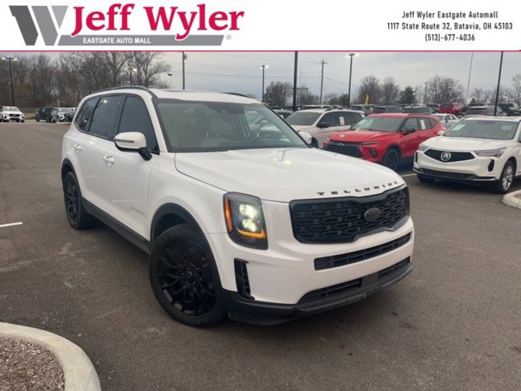 Jeff Wyler Eastgate Auto Mall is proud to offer this gorgeous-looking 2021 Kia Telluride EX in Glacial White Pearl. Well equipped with: EX Premium Package (2nd Row Captain Chairs, LED Headlamps, Satin Chrome Roof Rails, and Wheels: 7.5" x 20" Machined Finish Alloy), Nightfall Edition Package (Black Finish Radiator Grille, Exclusive Black Headlight Bezels, Front & Rear Gloss Black Finish Bumper Skid Plates, Front & Rear KIA Logo, Gloss Black Finish Exterior Emblems, Gloss Black Finish Front & Rear Door Garnish, Gloss Black Finish Roof Rails, and Wheels: 7.5" x 20" Exclusive Black Finish Alloy), 3.648 Axle Ratio, 3rd row seats: split-bench, 4-Wheel Disc Brakes, 6 Speakers, ABS brakes, Air Conditioning, Alloy wheels, AM/FM radio: SiriusXM, Apple CarPlay & Android Auto, Auto-dimming Rear-View mirror, Automatic temperature control, Brake assist, Bumpers: body-color, Carpeted Floor Mats, Compass, Delay-off headlights, Driver door bin, Driver vanity mirror, Dual front impact airbags, Dual front side impact airbags, Electronic Stability Control, Emergency communication system: 911 Connect, Four wheel independent suspension, Front anti-roll bar, Front Bucket Seats, Front Center Armrest, Front dual zone A/C, Front reading lights, Fully automatic headlights, Heated & Ventilated Front Bucket Seats, Heated door mirrors, Heated front seats, Heated steering wheel, Illuminated entry, Knee airbag, Leather Seat Trim, Leather Shift Knob, Leather steering wheel, Low tire pressure warning, Navigation System, Occupant sensing airbag, Outside temperature display, Overhead airbag, Overhead console, Panic alarm, Passenger door bin, Passenger vanity mirror, Power door mirrors, Power driver seat, Power Liftgate, Power moonroof, Power passenger seat, Power steering, Power windows, Radio data system, Radio: AM/FM/SIRIUS Display Audio, Rear air conditioning, Rear anti-roll bar, Rear audio controls, Rear reading lights, Rear seat center armrest, Rear window defroster, Rear window wiper, Reclining 3rd row seat, Remote keyless entry, Roof rack: rails only, Security system, Smart Key w/ Push Button and Remote Start, Speed control, Speed-sensing steering, Split folding rear seat, Spoiler, Steering wheel mounted audio controls, Tachometer, Telescoping steering wheel, Tilt steering wheel, Traction control, Trip computer, Turn signal indicator mirrors, Variably intermittent wipers, Ventilated front seats, and Wheels: 7.5" x 18" Machined Finish Alloy. Awards: * JD Power Automotive Performance, Execution and Layout (APEAL) Study, Initial Quality Study (IQS) * JD Power Initial Quality Study (IQS) Ask about available certifications. Used vehicles 10 years of age or newer with less than 100,000 miles are eligible for the Wyler Assurance Program, but eligible vehicles must pass our reconditioning process and multi-point inspection. Provided the vehicle passes inspection, vehicles will be eligible for the 6 month/6,000 mile limited warranty. The 6 month/6,000 mile limited warranty is NOT available on AS-IS vehicles, wholesale vehicles, lease buyback/pass-thru vehicles or un-inspected vehicles. Note that this program can also apply to vehicles where the remaining factory coverage is less than 6 months or 6,000 miles. Please check the Federal Trade Commission (FTC) Buyers guide on the vehicle for full details as to whether or not warranty coverage may apply. Contact Dealer for additional details. The Wyler Assurance 6 month/6,000 Mile limited warranty ends 6 months from the date of the Retail Purchase Agreement (BUYERS ORDER) or when the vehicle's odometer registers 6,000 additional miles to the mileage listed on the BUYERS ORDER, whichever comes first. Your Deductible - The warranty holder on your contract pays the first $100 of each covered repair.