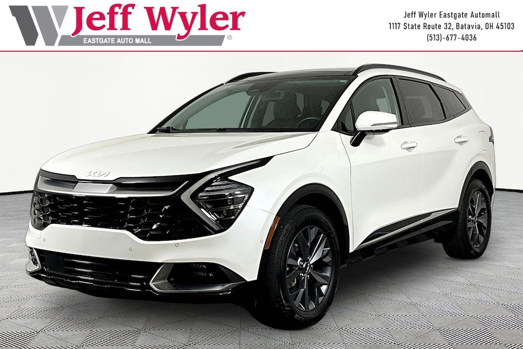 Jeff Wyler Eastgate Auto Mall is pumped up to offer this terrific-looking 2024 Kia Sportage Hybrid SX-Prestige in Snow White Pearl. Well equipped with: 4-Wheel Disc Brakes, 8 Speakers, ABS brakes, Air Conditioning, Alloy wheels, AM/FM radio: SiriusXM, Apple CarPlay & Android Auto, Auto High-beam Headlights, Automatic temperature control, Axle Ratio: 3.32, Brake assist, Bumpers: body-color, Carpet Floor Mats, Compass, Delay-off headlights, Driver door bin, Driver vanity mirror, Dual front impact airbags, Dual front side impact airbags, Electronic Stability Control, Emergency communication system, Four wheel independent suspension, Front anti-roll bar, Front Bucket Seats, Front Center Armrest, Front dual zone A/C, Front fog lights, Front reading lights, Fully automatic headlights, harman/kardon® Speakers, Heated & Ventilated Front Bucket Seats, Heated door mirrors, Heated front seats, Heated steering wheel, Illuminated entry, Leather steering wheel, Low tire pressure warning, Memory seat, Navigation System, Occupant sensing airbag, Outside temperature display, Overhead airbag, Overhead console, Panic alarm, Passenger door bin, Passenger vanity mirror, Power door mirrors, Power driver seat, Power Liftgate, Power moonroof, Power passenger seat, Power steering, Power windows, Premium Leatherette Seat Trim, Radio: AM/FM/HD Premium Audio System, Rain sensing wipers, Rear anti-roll bar, Rear reading lights, Rear seat center armrest, Rear side impact airbag, Rear window defroster, Rear window wiper, Remote keyless entry, Security system, Speed control, Speed-sensing steering, Split folding rear seat, Spoiler, Steering wheel mounted audio controls, Tachometer, Telescoping steering wheel, Tilt steering wheel, Traction control, Trip computer, Turn signal indicator mirrors, Variably intermittent wipers, Ventilated front seats, and Wheels: 18" x 7.5J Dark Alloy. CARFAX One-Owner. Clean CARFAX. Ask about available certifications. Used vehicles 10 years of age or newer with less than 100,000 miles are eligible for the Wyler Assurance Program, but eligible vehicles must pass our reconditioning process and multi-point inspection. Provided the vehicle passes inspection, vehicles will be eligible for the 6 month/6,000 mile limited warranty. The 6 month/6,000 mile limited warranty is NOT available on AS-IS vehicles, wholesale vehicles, lease buyback/pass-thru vehicles or un-inspected vehicles. Note that this program can also apply to vehicles where the remaining factory coverage is less than 6 months or 6,000 miles. Please check the Federal Trade Commission (FTC) Buyers guide on the vehicle for full details as to whether or not warranty coverage may apply. Contact Dealer for additional details. The Wyler Assurance 6 month/6,000 Mile limited warranty ends 6 months from the date of the Retail Purchase Agreement (BUYERS ORDER) or when the vehicle's odometer registers 6,000 additional miles to the mileage listed on the BUYERS ORDER, whichever comes first. Your Deductible - The warranty holder on your contract pays the first $100 of each covered repair.