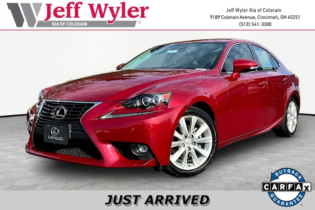 Jeff Wyler Kia of Colerain is honored to offer this superb-looking 2015 Lexus IS 250 in Matador Red Mica. 17" x 7.5" 10-Spoke Aluminum Alloy Wheels, 4-Wheel Disc Brakes, 8 Speakers, ABS brakes, Air Conditioning, Alloy wheels, AM/FM radio: SiriusXM, Auto-dimming Rear-View mirror, Automatic temperature control, Brake assist, Bumpers: body-color, CD player, Compass, Delay-off headlights, Driver door bin, Driver vanity mirror, Dual front impact airbags, Dual front side impact airbags, Electronic Stability Control, Emergency communication system: Safety Connect, F Sport Nuluxe Seat Trim, Four wheel independent suspension, Front anti-roll bar, Front Bucket Seats, Front Center Armrest, Front dual zone A/C, Front fog lights, Front reading lights, Fully automatic headlights, Garage door transmitter: HomeLink, Heated & Ventilated Front Sport Seats, Heated door mirrors, Heated Front Power Bucket Seats, Heated front seats, High intensity discharge headlights: Bi-Xenon, Illuminated entry, Knee airbag, Lexus Premium Audio System, Low tire pressure warning, NuLuxe Seat Trim, Occupant sensing airbag, Outside temperature display, Overhead airbag, Overhead console, Panic alarm, Passenger door bin, Passenger vanity mirror, Power door mirrors, Power driver seat, Power moonroof, Power passenger seat, Power steering, Power windows, Radio data system, Rear anti-roll bar, Rear reading lights, Rear seat center armrest, Rear side impact airbag, Rear window defroster, Remote keyless entry, Security system, Speed control, Speed-sensing steering, Speed-Sensitive Wipers, Split folding rear seat, Steering wheel mounted audio controls, Tachometer, Telescoping steering wheel, Tilt steering wheel, Traction control, Trip computer, Turn signal indicator mirrors, and Variably intermittent wipers Our PRE-OWNED vehicles are put through a rigorous 167- POINT QUALITY ASSURANCE INSPECTION along with an average amount of over $1,400.00 SPENT to recondition each vehicle so we can be sure to deliver you the highest quality vehicle like you deserve! ***ONLINE PRICE DOES NOT INCLUDE WYLER FAMILY FIRST PACKAGE***
