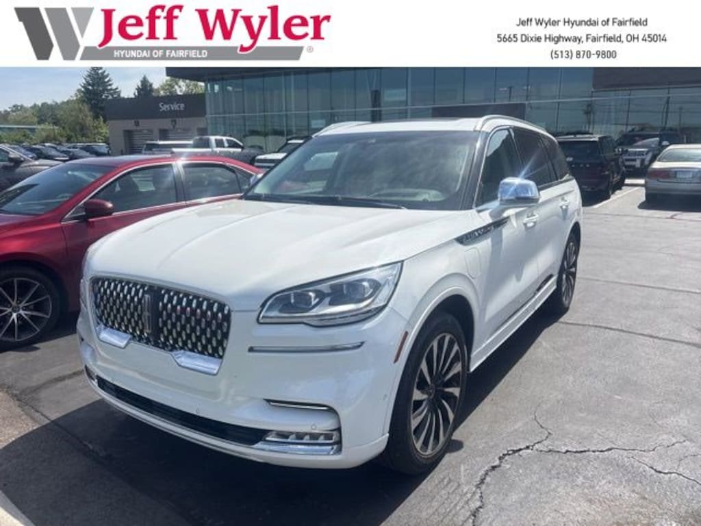 Jeff Wyler Hyundai of Fairfield is honored to offer this great 2020 Lincoln Aviator Plug-In Hybrid Black Label Grand Touring in White Metallic. Well equipped with: Equipment Group 900A, 3.0L V6 Hybrid Turbocharged DOHC 24V LEV3-SULEV30, Android Auto, Apple CarPlay, CALL NOW FOR YOUR VIP APPOINTMENT 513-870-9800, FULLY SERVICED w/RECORDS, GUARANTEED FINANCING!! NO MATTER YOUR SITUATION WE CAN GET AN APPROVAL!!, THE #1 Volume dealer in the region! Come see why for yourself Today!!, WE PAY MORE FOR YOUR TRADE!!, 28 Speakers, 3.31 Axle Ratio, 3rd row seats: split-bench, 4-Wheel Disc Brakes, ABS brakes, Adaptive suspension, Air Conditioning, Alloy wheels, AM/FM radio: SiriusXM, Audio memory, Auto High-beam Headlights, Auto-dimming door mirrors, Auto-dimming Rear-View mirror, Automatic temperature control, Brake assist, Bumpers: body-color, Compass, Delay-off headlights, Door auto-latch, Driver door bin, Driver vanity mirror, Dual front impact airbags, Dual front side impact airbags, Electronic Stability Control, Emergency communication system: SYNC 3 911 Assist, Four wheel independent suspension, Front anti-roll bar, Front Bucket Seats, Front Center Armrest, Front dual zone A/C, Front fog lights, Front reading lights, Fully automatic headlights, Garage door transmitter, Head restraints memory, Heads-Up Display, Heated door mirrors, Heated front seats, Heated rear seats, Heated steering wheel, HVAC memory, Illuminated entry, Knee airbag, Low tire pressure warning, Memory seat, Navigation System, Occupant sensing airbag, Outside temperature display, Overhead airbag, Overhead console, Panic alarm, Passenger door bin, Passenger vanity mirror, Power adjustable front head restraints, Power door mirrors, Power driver seat, Power Liftgate, Power moonroof, Power passenger seat, Power steering, Power windows, Radio data system, Radio: Revel Ultima 3D Audio System w/28 Speakers, Rain sensing wipers, Rear air conditioning, Rear anti-roll bar, Rear audio controls, Rear dual zone A/C, Rear reading lights, Rear window defroster, Rear window wiper, Remote keyless entry, Savannah Leather Heated/Ventilated Seats (76E), Security system, SiriusXM Radio, Speed control, Speed-Sensitive Wipers, Split folding rear seat, Spoiler, Steering wheel memory, Steering wheel mounted A/C controls, Steering wheel mounted audio controls, SYNC 3 Communication & Entertainment System, Tachometer, Telescoping steering wheel, Tilt steering wheel, Traction control, Trip computer, Turn signal indicator mirrors, Variably intermittent wipers, Ventilated front seats, Ventilated rear seats, and Wheels: 21" Ultra Bright Machined Aluminum. TO CHECK ON THE AVAILABILITY OF THIS VEHICLE REACH OUT TO ONE OF OUR TEAM MEMBERS!! ALSO SHOP ONLINE AT https://www.jeffwylerhyundaioffairfield.com/ Proudly Serving: Cincinnati, Dayton, Columbus, Louisville, Lexington, Indianapolis, Hamilton, Florence, Alexandria, Beavercreek, Springdale, West Chester, Monroe, Fairfield, Kenwood, Newport and all of greater Cincinnati Ohio, Indiana, and Northern Kentucky.