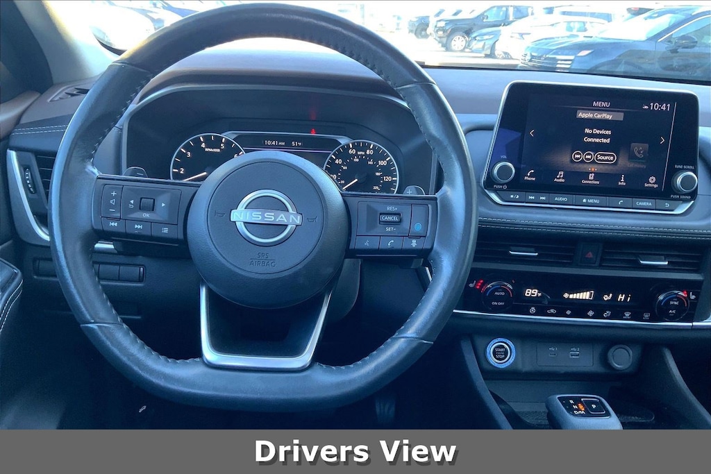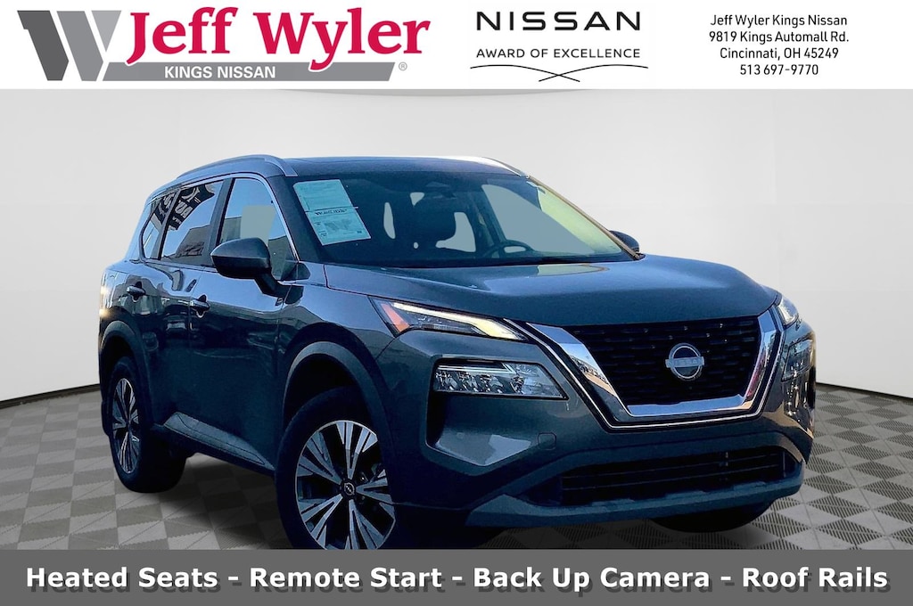 Jeff Wyler Kings Nissan is pumped up to offer this superb-looking 2023 Nissan Rogue SV in Gun Metallic. Well equipped with: SV Premium B Package (Heated Driver & Front Passenger Seats, Heated Leather Wrapped Steering Wheel, Leatherette Door Trim Inserts w/Stitch, Panoramic Moonroof, Power Liftgate, PRIMATEX Leatherette Seat Trim, Rear Door Sunshades, Rear Personal Lights, Security Alarm, and Silver Painted Roof Rails), AWD, 18" Aluminum Alloy Wheels, 4-Wheel Disc Brakes, 5.604 Axle Ratio, 6 Speakers, ABS brakes, Air Conditioning, Alloy wheels, AM/FM Radio, AM/FM radio: SiriusXM, Auto High-beam Headlights, Automatic temperature control, Black Splash Guards (Set of 4), Brake assist, Bumpers: body-color, Chrome Rear Bumper Protector, Cloth Seat Trim, Delay-off headlights, Driver door bin, Driver vanity mirror, Dual front impact airbags, Dual front side impact airbags, Electronic Stability Control, Emergency communication system: NissanConnect Services, First Aid Kit, Floor Mats w/1-Piece Cargo Area Protector, Four wheel independent suspension, Front anti-roll bar, Front Bucket Seats, Front Center Armrest, Front dual zone A/C, Front reading lights, Fully automatic headlights, Heated door mirrors, Illuminated entry, Knee airbag, Low tire pressure warning, NissanConnect featuring Apple CarPlay and Android Auto, Occupant sensing airbag, Outside temperature display, Overhead airbag, Overhead console, Panic alarm, Passenger door bin, Passenger vanity mirror, Power door mirrors, Power driver seat, Power steering, Power windows, Radio data system, Rear anti-roll bar, Rear Parking Sensors, Rear seat center armrest, Rear side impact airbag, Rear window defroster, Rear window wiper, Remote keyless entry, Speed control, Speed-Sensitive Wipers, Split folding rear seat, Spoiler, Steering wheel mounted audio controls, Tachometer, Telescoping steering wheel, Tilt steering wheel, Traction control, Trip computer, and Variably intermittent wipers.Ask about available certifications.