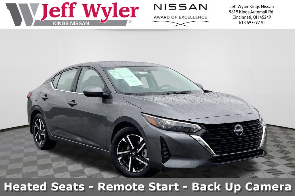 Jeff Wyler Kings Nissan is proud to offer this outstanding-looking 2025 Nissan Sentra SV in Gun Metallic. Well equipped with: All-Weather Package (Dual Zone Auto Climate Control, Heated Exterior Mirrors, Heated Front Seats, Leather-Wrapped Heated Steering Wheel, and Remote Engine Start), CVT with Xtronic, Charcoal Cloth, 16" Alloy Wheels, 4-Wheel Disc Brakes, 8 Speakers, ABS brakes, Air Conditioning, Alloy wheels, AM/FM radio: SiriusXM, Auto High-beam Headlights, Blind Spot Warning, Body Colored Splash Guards (4-Piece), Brake assist, Bumpers: body-color, Carpeted Floor Mats with Trunk Mat, Clear Rear Bumper Protector, Delay-off headlights, Door Sill Plates, Driver door bin, Driver vanity mirror, Dual front impact airbags, Dual front side impact airbags, Electronic Stability Control, Four wheel independent suspension, Front anti-roll bar, Front Bucket Seats, Front Center Armrest, Front reading lights, Fully automatic headlights, Illuminated entry, Knee airbag, Low tire pressure warning, Nissan Connect Services, NissanConnect featuring Apple CarPlay and Android Auto, NissanConnect Services, Occupant sensing airbag, Outside temperature display, Overhead airbag, Overhead console, Panic alarm, Passenger door bin, Passenger vanity mirror, Power door mirrors, Power steering, Power windows, Radio data system, Radio: AM/FM with RDS/MP3/Aux-in, Rear anti-roll bar, Rear Parking Sensors, Rear side impact airbag, Rear window defroster, Remote keyless entry, Security system, Speed control, Speed-sensing steering, Split folding rear seat, Steering wheel mounted audio controls, Tachometer, Telescoping steering wheel, Tilt steering wheel, Traction control, Trip computer, Upgraded Cloth Seat Trim, Variably intermittent wipers, and Wi-Fi Hotspot.Ask about available certifications.