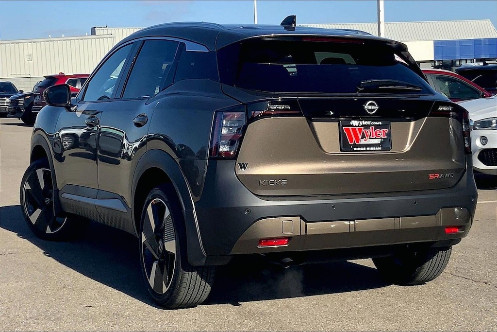 $2,438 off MSRP! Jeff Wyler Kings Nissan is honored to offer this gorgeous-looking 2026 Nissan Kicks SR in Canyon Bronze Metallic. Well equipped with: Cold Weather Package (Heated Front Seats, Heated Mirrors, and Rear Floor Heater Ducts), Illumination Package (Illuminated Cargo Scuff Plate and Illuminated Kickplates), SR Premium Package (Bose 10 -Speaker Audio, Driver Seat-Mounted Supplemental Air Bag, Heated Steering Wheel, and Panoramic Moonroof), 17" Alloy Wheels, 19" Alloy Wheels, 4-Wheel Disc Brakes, 6 Speakers, ABS brakes, Air Conditioning, Alloy wheels, AM/FM radio, Auto High-beam Headlights, Automatic temperature control, Brake assist, Bumpers: body-color, Carpeted Floor Mats, Delay-off headlights, Driver door bin, Driver vanity mirror, Dual front impact airbags, Dual front side impact airbags, Electronic Stability Control, Emergency communication system: NissanConnect Services, Exterior Parking Camera Rear, Four wheel independent suspension, Front anti-roll bar, Front Bucket Seats, Front Center Armrest, Front reading lights, Fully automatic headlights, Garage door transmitter: myQ Connected Garage, Illuminated entry, Knee airbag, Leather Shift Knob, Leather steering wheel, Low tire pressure warning, NissanConnect featuring Apple CarPlay and Android Auto, Occupant sensing airbag, Outside temperature display, Overhead airbag, Overhead console, Panic alarm, Passenger door bin, Passenger vanity mirror, Power door mirrors, Power steering, Power windows, Radio data system, Radio: AM/FM/SiriusXM Audio System, Rear anti-roll bar, Rear reading lights, Rear seat center armrest, Rear side impact airbag, Rear window defroster, Rear window wiper, Remote keyless entry, Security system, Speed control, Speed-sensing steering, Splash Guards, Split folding rear seat, Spoiler, Sport Leatherette with Cloth Insert Seat Trim, Sport steering wheel, Steering wheel mounted audio controls, Tachometer, Telescoping steering wheel, Tilt steering wheel, Traction control, Trip computer, Turn signal indicator mirrors, and Variably intermittent wipers. 27/34 City/Highway MPGWyler Family First Package Includes: NanoCure Appearance Protection: Exterior & Interior Chemical Sealant Applied to Protect Against Environmental Hazards (7 Year Warranty Coverage). Pulse- Rear end Collision Avoidance System Theft Deterrent Strategy gives you 5 Years of Coverage against vehicle Theft, Offering up to a $5,000 benefit. Used vehicles 10 years of age or newer with less than 100,000 miles are eligible for the Wyler Assurance Program, but eligible vehicles must pass our reconditioning process and multi-point inspection. Provided the vehicle passes inspection, vehicles will be eligible for the 6 month/6,000 mile limited warranty. The 6 month/6,000 mile limited warranty is NOT available on AS-IS vehicles, wholesale vehicles, lease buyback/pass-thru vehicles or un-inspected vehicles. Note that this program can also apply to vehicles where the remaining factory coverage is less than 6 months or 6,000 miles. Please check the Federal Trade Commission (FTC) Buyers guide on the vehicle for full details as to whether or not warranty coverage may apply. Contact Dealer for additional details. The Wyler Assurance 6 month/6,000 Mile limited warranty ends 6 months from the date of the Retail Purchase Agreement (BUYERS ORDER) or when the vehicle's odometer registers 6,000 additional miles to the mileage listed on the BUYERS ORDER, whichever comes first. Your Deductible - The warranty holder on your contract pays the first $100 of each covered repair. Price includes: $1000 - Nissan Customer Cash. Exp. 03/31/2026