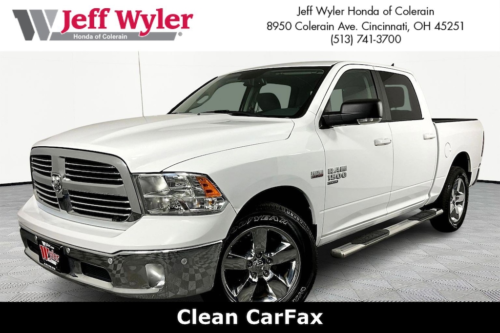 Jeff Wyler Honda of Colerain is very proud to offer this terrific-looking 2019 Ram 1500 Classic Big Horn in Bright White Clearcoat. Well equipped with: Big Horn Regional Package, Quick Order Package 26S Big Horn (1-Yr SiriusXM Guardian Trial, 115V Auxiliary Power Outlet, 40/20/40 Split Bench Seat, 8.4" Touchscreen Display, Air Conditioning ATC w/Dual Zone Control, Apple CarPlay, Auto-Dimming Exterior Mirrors, Auto-Dimming Rear-View Mirror, Big Horn Badge, Bright/Bright Billets Grille, Class IV Receiver Hitch, Cloth 40/20/40 Premium Bench Seat, Cluster 7.0" TFT Color Display, Dual Rear Exhaust w/Bright Tips, Electric Shift-On-Demand Transfer Case, Exterior Mirrors Courtesy Lamps, Exterior Mirrors w/Supplemental Signals, Folding Flat Load Floor Storage, Front Armrest w/3 Cupholders, Front Center Seat Cushion Storage, Front Fog Lamps, Glove Box Lamp, Google Android Auto, GPS Antenna Input, HD Radio, Humidity Sensor, Integrated Voice Command w/Bluetooth, Leather Wrapped Steering Wheel, LED Bed Lighting, Media Hub (2 USB, AUX), Overhead Console w/Garage Door Opener, ParkSense Ft/Rr Park Assist System, Power 10-Way Driver Seat, Power Heated Fold-Away Mirrors, Power Lumbar Adjust, Power-Folding Mirrors, Radio: Uconnect 4C w/8.4" Display, Rear 60/40 Split Folding Seat, Rear Dome w/On/Off Switch Lamp, Rear Floor Mats, Rear Power Sliding Window, Remote Start System, Remote USB Port - Charge Only, Security Alarm, SiriusXM Satellite Radio, Steering Wheel Mounted Audio Controls, Storage Tray, Sun Visors w/Illuminated Vanity Mirrors, Universal Garage Door Opener, USB Host Flip, and Wheels: 20" x 8" Aluminum Chrome Clad), 3.21 Rear Axle Ratio, 4-Wheel Disc Brakes, 6 Speakers, ABS brakes, Active Grille Shutters, Air Conditioning, Alloy wheels, AM/FM radio: SiriusXM, Black Exterior Mirrors, Brake assist, Bumpers: chrome, Center Hub, Compass, Delay-off headlights, Driver door bin, Dual front impact airbags, Dual front side impact airbags, Electronic Shift, Electronic Stability Control, Exterior Mirrors w/Heating Element, Front anti-roll bar, Front Center Armrest w/Storage, Front reading lights, Front wheel independent suspension, Fully automatic headlights, Heated door mirrors, Illuminated entry, Low tire pressure warning, Manufacturer's Statement of Origin, Occupant sensing airbag, Outside temperature display, Overhead airbag, Overhead console, Panic alarm, ParkView Rear Back-Up Camera, Passenger door bin, Passenger vanity mirror, Power door mirrors, Power steering, Power windows, Radio data system, Rear anti-roll bar, Rear seat center armrest, Rear step bumper, Remote keyless entry, Speed control, Tachometer, Tilt steering wheel, Tip Start, Traction control, Trip computer, Variably intermittent wipers, and Voltmeter.