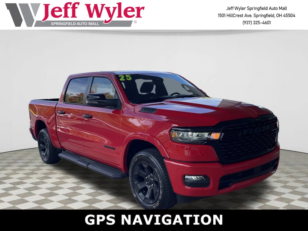 Jeff Wyler Springfield Auto Mall is honored to offer this good-looking 2025 Ram 1500 Big Horn/Lone Star in Flame Red Clearcoat. Well equipped with: Bed Utility Group (Exterior 115V AC Outlet, MOPAR 4 Adjustable Cargo Tie-Down Hooks, MOPAR Spray In Bedliner, and Pick-Up Box Lighting), Big Horn Level 2 Equipment Group (115V Auxiliary Power Outlet, 115V Auxiliary Rear Power Outlet, 12" Touchscreen Display, 2nd Row In Floor Storage Bins, 400W Inverter, 4G LTE Wi-Fi Hot Spot, 9 Amplified Speakers w/Subwoofer, Air Conditioning ATC w/Dual Zone Control, Apple CarPlay, Auto Power-Folding Mirrors, Auto-Dimming Exterior Driver Mirror, Auto-Dimming Rear-View Mirror, Black Exterior Mirrors, Black Premium Power Mirrors, Cluster 7.0" TFT Color Display, Configurable Drive Mode, Connected Travel & Traffic Services, Connectivity - US/Canada, Convex Wide-Angle Exterior Mirror Insert, Exterior Mirrors Courtesy Lamps, Exterior Mirrors w/Heating Element, Exterior Mirrors w/Supplemental Signals, Glove Box Lamp, Google Android Auto, GPS Antenna Input, GPS Navigation, HD Radio, Heated Front Seats, Heated Steering Wheel, Integrated Voice Command w/Bluetooth, Leather Wrapped Steering Wheel, LED Dome Lamp w/On/Off Switch, LED Footwell Lighting, Media Hub w/2 Charge Only USBs, Overhead LED Lamps, Power 2-Way Driver Lumbar Adjust, Power Adjust 8-Way Driver Seat, Power Adjustable Pedals, Premium Overhead Console, Radio: Uconnect 5 Nav w/12.0" Display, Rear Power Sliding Window, Rear Window Defroster, Remote Tailgate Release, Security Alarm, SiriusXM w/360L, Steering Wheel Mounted Audio Controls, Sun Visors w/Illuminated Vanity Mirrors, Universal Garage Door Opener, and USB Host Flip), Night Edition (3 Rear Seat Head Restraints, 4 Way Front Headrests, Accent Color Door Handles, Accent Color Premium Power Mirrors, Accent Color Tailgate Handle, Anti-Spin Differential Rear Axle, Black Exterior Truck Badging, Black Headlamp Bezels, Black Interior Accents, Black Painted Exterior Mirrors Caps, Black Tail Lamp Bezels, Body Color Front Bumper, Body Color Rear Bumper w/Step Pads, Bucket Seats, Deluxe Cloth Bucket Seats, Front Seat Back Map Pockets, Full Length Floor Console, Grille Black Surround Black Mesh, Manual Adjust 4-Way Front Passenger Seat, RAM Grille Badge - Black, Rear 60/40 Folding Seat, Rear Center Armrest, and Wheels: 20" x 9.0" Aluminum Painted Clad), Quick Order Package 21Z Big Horn, 4-Wheel Disc Brakes, 6 Speakers, ABS brakes, Air Conditioning, Alloy wheels, AM/FM radio, Apple CarPlay/Android Auto, Auto High-beam Headlights, Brake assist, Bumpers: chrome, Cloth Bench Seat, Cluster 12" TFT Color Display, Compass, Delay-off headlights, Driver door bin, Dual front impact airbags, Dual front side impact airbags, Electronic Stability Control, Front anti-roll bar, Front Center Armrest w/Storage, Front fog lights, Front License Plate Bracket, Front reading lights, Front wheel independent suspension, Fully automatic headlights, Heated door mirrors, Illuminated entry, Low tire pressure warning, Manual Folding Exterior Mirrors, Mopar Black Tubular Side Steps, MOPAR Front & Rear Rubber Floor Mats, Occupant sensing airbag, Outside temperature display, Overhead airbag, Overhead console, Panic alarm, ParkView Rear Back-Up Camera, Passenger door bin, Passenger vanity mirror, Power door mirrors, Power steering, Power windows, Radio data system, Radio: Uconnect 5 W w/8.4" Display, RAM Grille Badge - Chrome, Rear anti-roll bar, Rear seat center armrest, Rear step bumper, Rear Underseat Compartment Storage, Remote keyless entry, Speed control, Split folding rear seat, Supplier Part Tracking (J-1), Tachometer, Telescoping steering wheel, Tilt steering wheel, Traction control, Trip computer, Variably intermittent wipers, Voltmeter, and Wheels: 18" x 8" Cast-Aluminum Painted. Ask about available certifications. Used vehicles 10 years of age or newer with less than 100,000 miles are eligible for the Wyler Assurance Program, but eligible vehicles must pass our reconditionin