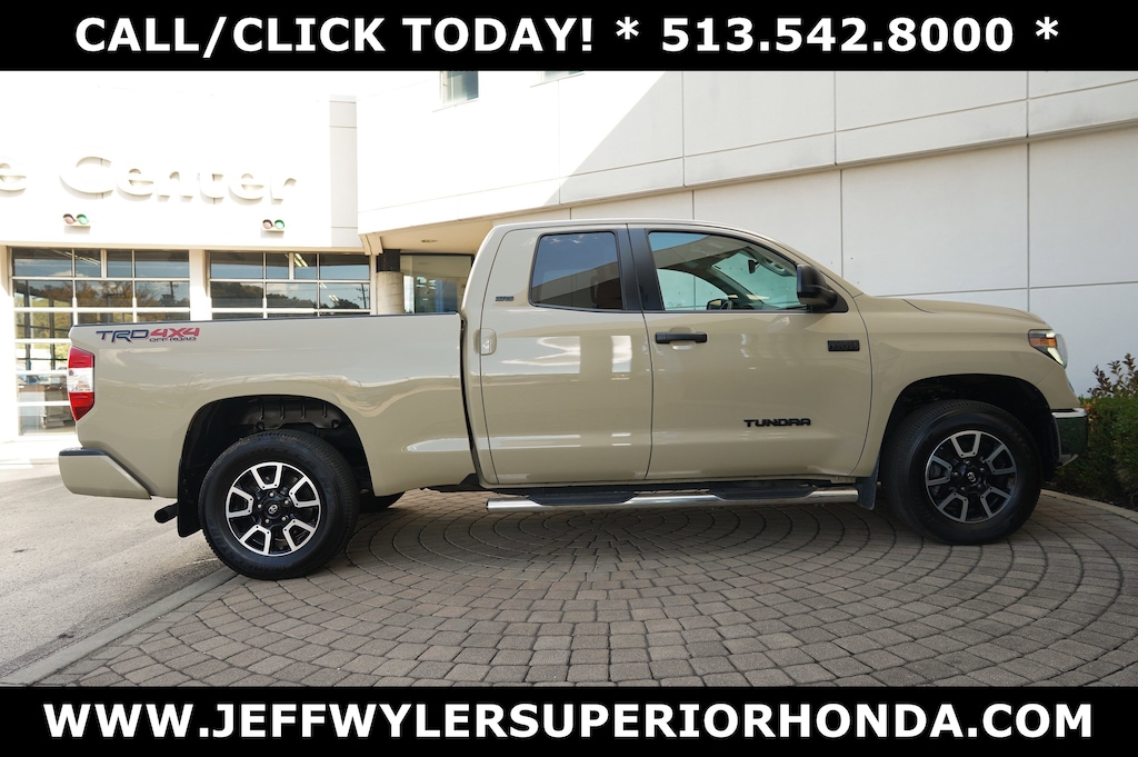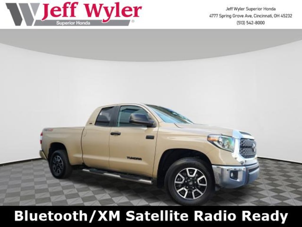 Jeff Wyler Superior Honda is proud to offer this good-looking 2020 Toyota Tundra SR5 in Quicksand. BLUETOOTH and SERVICE RECORDS AVAILABLE Tundra SR5, 4D Double Cab, i-Force 5.7L V8 DOHC 32V LEV, 6-Speed Automatic Electronic, 4WD, Quicksand, ABS brakes, Active Cruise Control, Compass, Electronic Stability Control, Heated door mirrors, Illuminated entry, Low tire pressure warning, Remote keyless entry, Traction control, 18" Styled Steel Wheels, 3-Passenger Front Bench Seat, 4-Wheel Disc Brakes, 4.30 Axle Ratio, 7 Speakers, Air Conditioning, AM/FM radio: SiriusXM, Apple CarPlay/Android Auto, Auto High-beam Headlights, Auto-Dimming Rear-View Mirror, Auto-dimming Rear-View mirror, Brake assist, Delay-off headlights, Driver door bin, Driver vanity mirror, Dual front impact airbags, Dual front side impact airbags, Emergency communication system: Safety Connect with 1-year trial, Exterior Parking Cameras, Fabric Seat Trim, Front anti-roll bar, Front Center Armrest w/Storage, Front Fog & Daytime Running Lights, Front fog lights, Front reading lights, Front wheel independent suspension, Fully automatic headlights, Garage door transmitter: HomeLink, HomeLink Universal Transceiver, Knee airbag, Occupant sensing airbag, Outside temperature display, Overhead airbag, Overhead console, Panic alarm, Passenger door bin, Passenger vanity mirror, Power door mirrors, Power steering, Power windows, Radio data system, Radio: Audio Plus AM/FM/HD Radio, Rear reading lights, Rear step bumper, Rear Under-Seat Storage Compartment, Safety Connect, SiriusXM Radio, Sliding Rear Window w/Privacy Glass, Speed control, Speed-sensing steering, Split folding rear seat, Steering wheel mounted audio controls, Tachometer, Tilt steering wheel, Trip computer, Variably intermittent wipers, and Voltmeter Our PRE-OWNED vehicles are put through a rigorous 167- POINT QUALITY ASSURANCE INSPECTION along with an average amount of over $1,400.00 SPENT to recondition each vehicle so we can be sure to deliver you the highest quality vehicle like you deserve! ***ONLINE PRICE DOES NOT INCLUDE WYLER FAMILY FIRST PACKAGE*** Stop by 4777 Spring Grove Ave. Road to see for yourself, or give us a call @ 283-209-1858 to schedule your test drive!