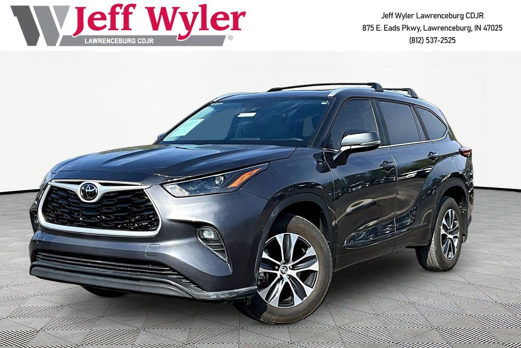 Jeff Wyler Chrysler Dodge Jeep of Lawrenceburg is pleased to offer this beautiful 2023 Toyota Highlander XLE in Moon Dust. AWD, ABS brakes, Active Cruise Control, Alloy wheels, Electronic Stability Control, Front dual zone A/C, Heated door mirrors, Heated Front Bucket Seats, Heated front seats, Illuminated entry, Low tire pressure warning, Power Liftgate, Power moonroof, Remote keyless entry, Traction control, 3.329 Axle Ratio, 3rd row seats: split-bench, 4-Wheel Disc Brakes, 6 Speakers, Air Conditioning, AM/FM radio: SiriusXM, Apple CarPlay/Android Auto, Auto High-beam Headlights, Auto-dimming Rear-View mirror, Automatic temperature control, Brake assist, Bumpers: body-color, Delay-off headlights, Driver door bin, Driver vanity mirror, Dual front impact airbags, Dual front side impact airbags, Emergency communication system: Safety Connect (up to 10-year trial subscription), Exterior Parking Camera Rear, Four wheel independent suspension, Front anti-roll bar, Front Bucket Seats, Front Center Armrest, Front fog lights, Front reading lights, Fully automatic headlights, Garage door transmitter: HomeLink, Knee airbag, Leather Shift Knob, Leather steering wheel, Occupant sensing airbag, Outside temperature display, Overhead airbag, Overhead console, Panic alarm, Passenger door bin, Passenger vanity mirror, Power door mirrors, Power driver seat, Power passenger seat, Power steering, Power windows, Radio: 8" Toyota Audio Multimedia, Rear air conditioning, Rear anti-roll bar, Rear reading lights, Rear window defroster, Rear window wiper, Reclining 3rd row seat, Roof rack: rails only, Security system, SofTex Seat Trim, Speed control, Speed-sensing steering, Split folding rear seat, Spoiler, Steering wheel mounted audio controls, Tachometer, Telescoping steering wheel, Tilt steering wheel, Trip computer, Turn signal indicator mirrors, Variably intermittent wipers, and Wheels: 18" Machined-Finish Alloy Our PRE-OWNED vehicles are put through a rigorous 167- POINT QUALITY ASSURANCE INSPECTION along with an average amount of over $1,400.00 SPENT to recondition each vehicle so we can be sure to deliver you the highest quality vehicle like you deserve! ***ONLINE PRICE DOES NOT INCLUDE WYLER FAMILY FIRST PACKAGE*** Stop by 4136 Shelbyville Road to see for yourself, or give us a call @ 502-897-3151 to schedule your test drive! Ask about available certifications.