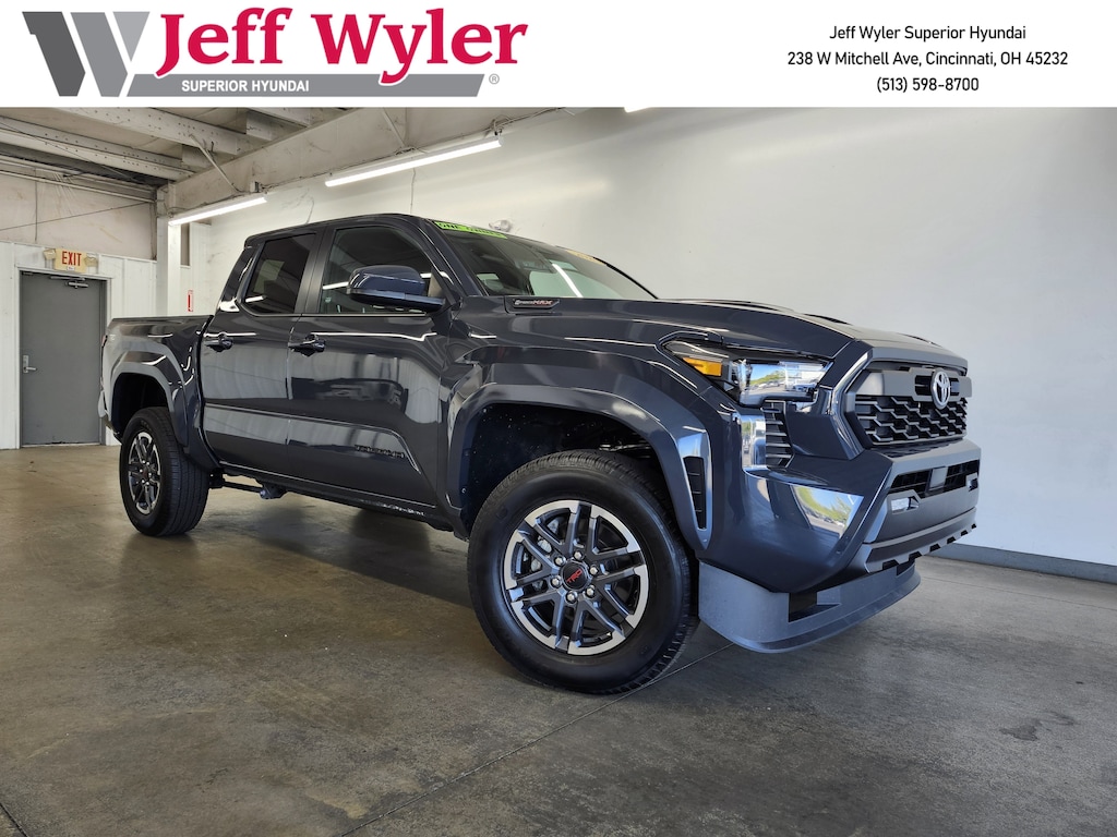 Jeff Wyler Superior Hyundai is delighted to offer this wonderful 2024 Toyota Tacoma Hybrid in Gray. Well equipped with: 2.4L I4 PDI Hybrid Turbocharged DOHC 16V, 3.583 Axle Ratio, 4-Wheel Disc Brakes, ABS brakes, Air Conditioning, Alloy wheels, AM/FM radio: SiriusXM, Anti-whiplash front head restraints, Apple CarPlay/Android Auto, Auto High-beam Headlights, Auto-dimming Rear-View mirror, Automatic temperature control, Brake assist, Bumpers: body-color, Driver door bin, Driver vanity mirror, Dual front impact airbags, Dual front side impact airbags, Electronic Stability Control, Emergency communication system: Safety Connect (1-year trial), Exterior Parking Camera Rear, Four wheel independent suspension, Front anti-roll bar, Front Center Armrest, Front fog lights, Front reading lights, Fully automatic headlights, Heated door mirrors, Illuminated entry, JBL Premium Audio, Knee airbag, Leather Shift Knob, Leather steering wheel, Low tire pressure warning, Navigation system: Drive Connect (1 year trial) includes Cloud Navigation with real time traffic and Google POI, Occupant sensing airbag, Outside temperature display, Overhead airbag, Overhead console, Panic alarm, Passenger door bin, Passenger vanity mirror, Power door mirrors, Power steering, Power windows, Radio: 14" Toyota Audio Multimedia, Rear step bumper, Rear window defroster, Remote keyless entry, Security system, SofTex Seat Trim, Speed control, Speed-sensing steering, Split folding rear seat, Steering wheel mounted audio controls, Tachometer, Telescoping steering wheel, Tilt steering wheel, Traction control, Trip computer, Turn signal indicator mirrors, and Variably intermittent wipers. CARFAX One-Owner. This sales price excludes tax, title, and dealer fees. While every reasonable effort is made to ensure the accuracy of this information, we are not responsible for any errors or omissions contained on these pages. Used vehicles 10 years of age or newer with less than 100,000 miles are eligible for the Wyler Assurance Program, but eligible vehicles must pass our reconditioning process and multi-point inspection. Provided the vehicle passes inspection, vehicles will be eligible for the 6 month/6,000 mile limited warranty. The 6 month/6,000 mile limited warranty is NOT available on AS-IS vehicles, wholesale vehicles, lease buyback/pass-thru vehicles or un-inspected vehicles. Note that this program can also apply to vehicles where the remaining factory coverage is less than 6 months or 6,000 miles. Please check the Federal Trade Commission (FTC) Buyers guide on the vehicle for full details as to whether or not warranty coverage may apply. Contact Dealer for additional details. The Wyler Assurance 6 month/6,000 Mile limited warranty ends 6 months from the date of the Retail Purchase Agreement (BUYERS ORDER) or when the vehicle's odometer registers 6,000 additional miles to the mileage listed on the BUYERS ORDER, whichever comes first.Your Deductible - The warranty holder on your contract pays the first $100 of each covered repair.